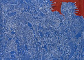 Образный мир Адиля Аубекерова пребывает в становлении, метаморфозе, воображаемой нулевой точке, из которой еще предстоит явиться фигурам и вещам. Это “ликвидная” жизнь красочных потоков и луж на поверхности холста. Посреди этих смесей, завихрений и протуберанцев иногда возникают фигуры существ и людей, но лишь для того, чтобы вновь растечься и изменить очертания. Стихии Аубукерова подобны маскам как способу высказывания через образ. “Я рассматриваю маску как доказательство присутствия человека, ... слепок себя в моменте” - говорит автор. В подобном “слепке себя”, каковым и является для него живопись, художник воплощает индивидуальную утопию всеобщей гармонизации.
