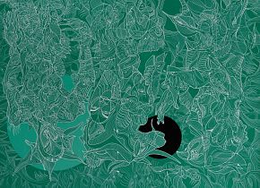Плоскость холста для Аубукерова не терпит пустоты, нуждаясь в тотальном заполнении. Не имея начала и конца, его линии множатся, сплетаясь в сложные паттерны, подобно растениям или бактериям. Движение руки по плоскости оборачивается сложными нелинейными путешествиями зрительского взгляда в пространстве. Образы максимально заполняют поверхность, как флора. В способах их построения автор манипулирует большим количеством визуальных цитат - от Пауля Клее и Анри Матисса до Жана-Мишеля Баскии, Кита Хэринга и даже Маурица Эшера - объединяя присущие всем этим авторам сложные способы структурирования картинного пространства с ориенталистской орнаменталистикой, собственной восточной идентичностью.