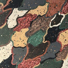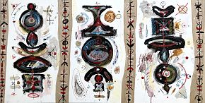 Не ограничивается в материалах и всегда находится в поиске: холст, рисовая бумага, дерево, ручная бумага, органические и синтетические объекты, а также предметы ready made, макрофотография и видео. Создает собственные инструменты для творчества.