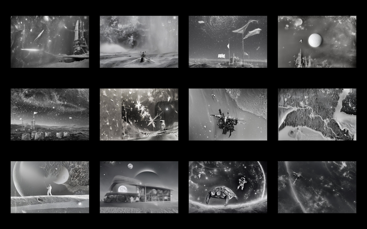 Пейзажи Бухты Лунной Пыли создаются на основе этой информации посредством сочетания фотограммы (самой первой фотографической технологии) и генерации (новейшего технологичного способа получения изображения).
