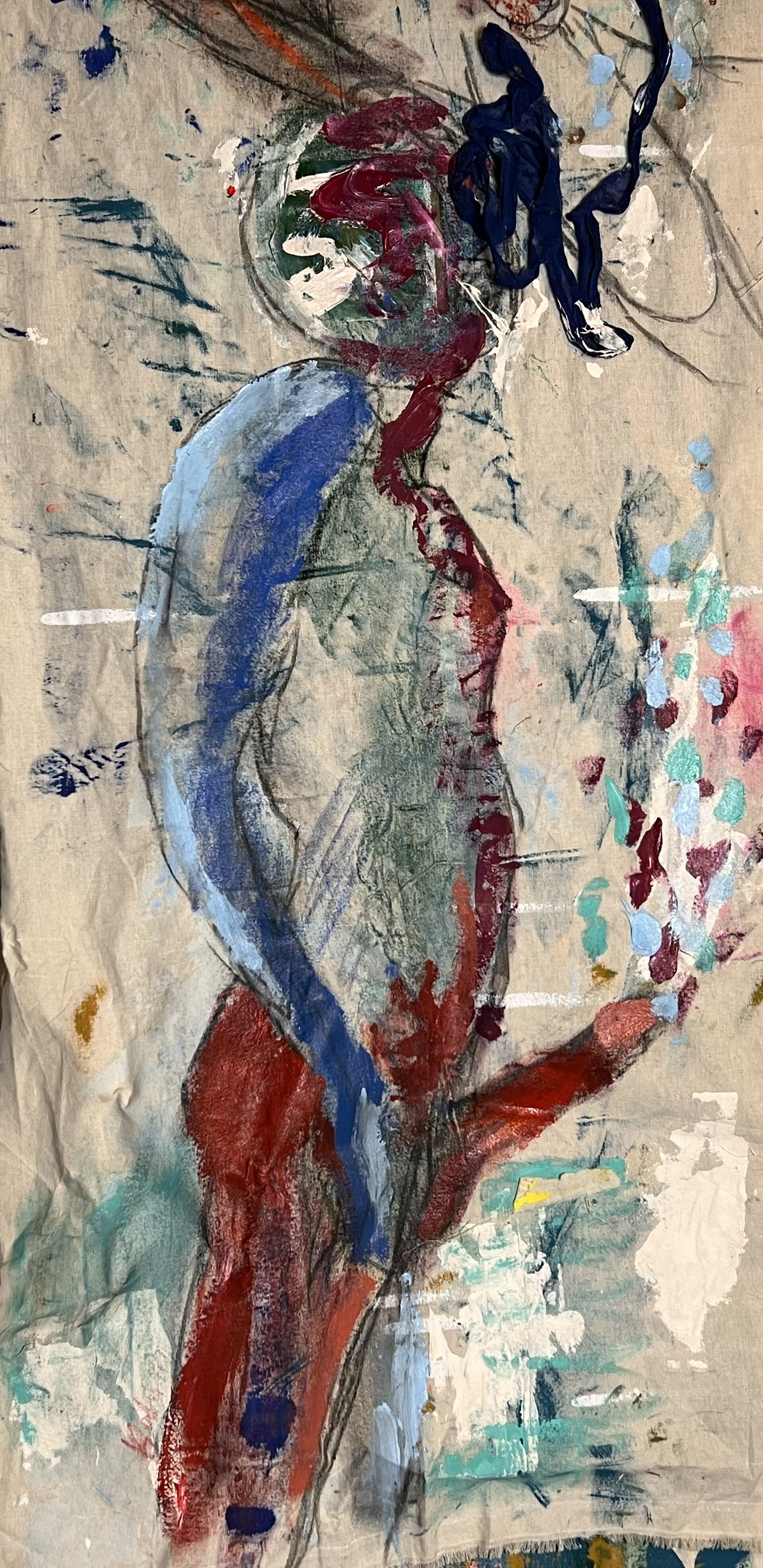 Двустороннее полотно, созданное в рамках арт-резиденции DOM в Ситжесе в 2023. Темой резиденции была “Цензура и самоцензура”. На одной стороне полотна – абстракция, на другой – нет. Зритель сам может выбрать, какой стороной ему хочется любоваться.