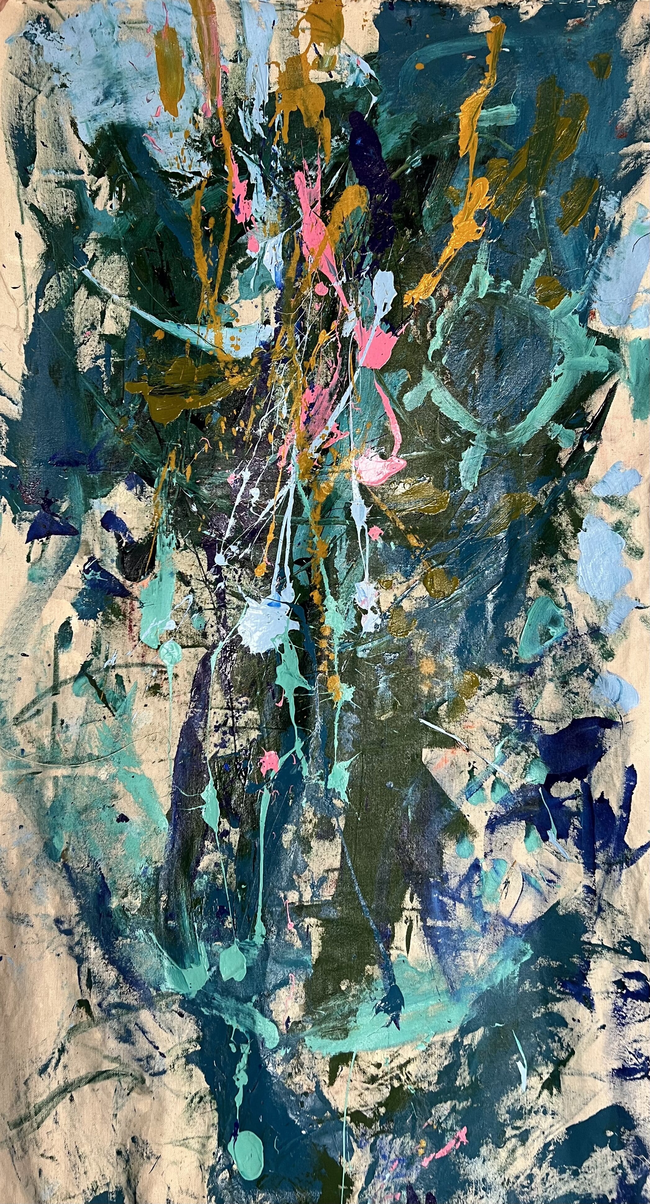 Двустороннее полотно, созданное в рамках арт-резиденции DOM в Ситжесе в 2023. Темой резиденции была “Цензура и самоцензура”. На одной стороне полотна – абстракция, на другой – нет. Зритель сам может выбрать, какой стороной ему хочется любоваться.