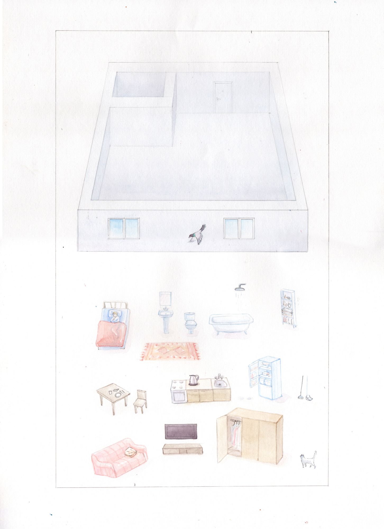 Серия графики и архитектурные рисунки были созданы для социальной скульптуры «Однушка». Эта работа была реализована в 2019 году в рамках проекта «На районе», инициированного Австрийским культурным форумом.