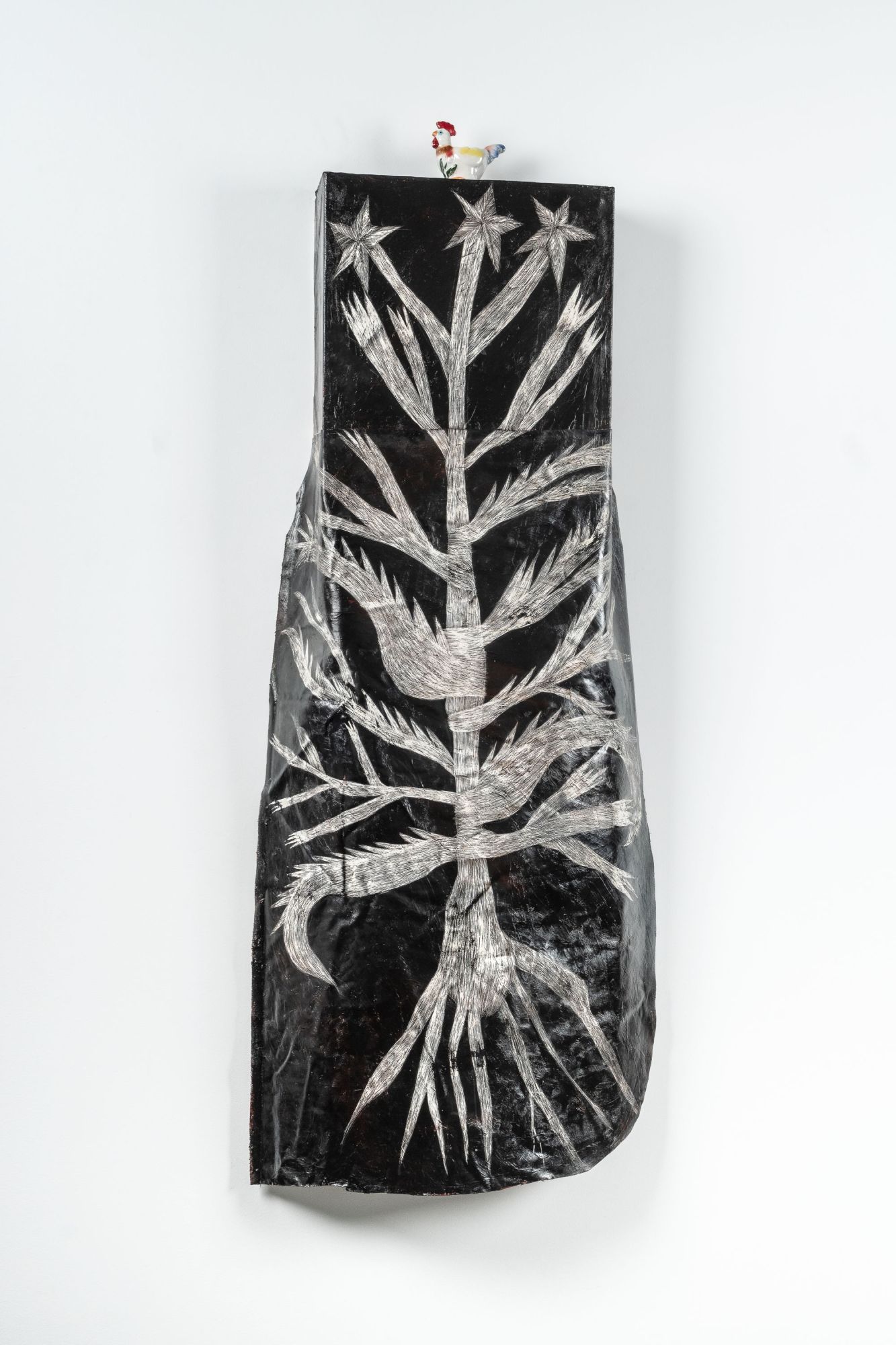 Художник работает с найденными объектами в авторской технике. Он процарапывает образы из своего фантазийного пантеона, на формирование которого повлияли увлечение старообрядческим лубком и «прошлой жизнью» вещей. Холстами для изображений становятся дверцы старых шкафов, поношенные пиджаки друзей и игрушки, брошенные повзрослевшими детьми. Автору важно сохранить и законсервировать память бытовых вещей, подарить им вторую жизнь.