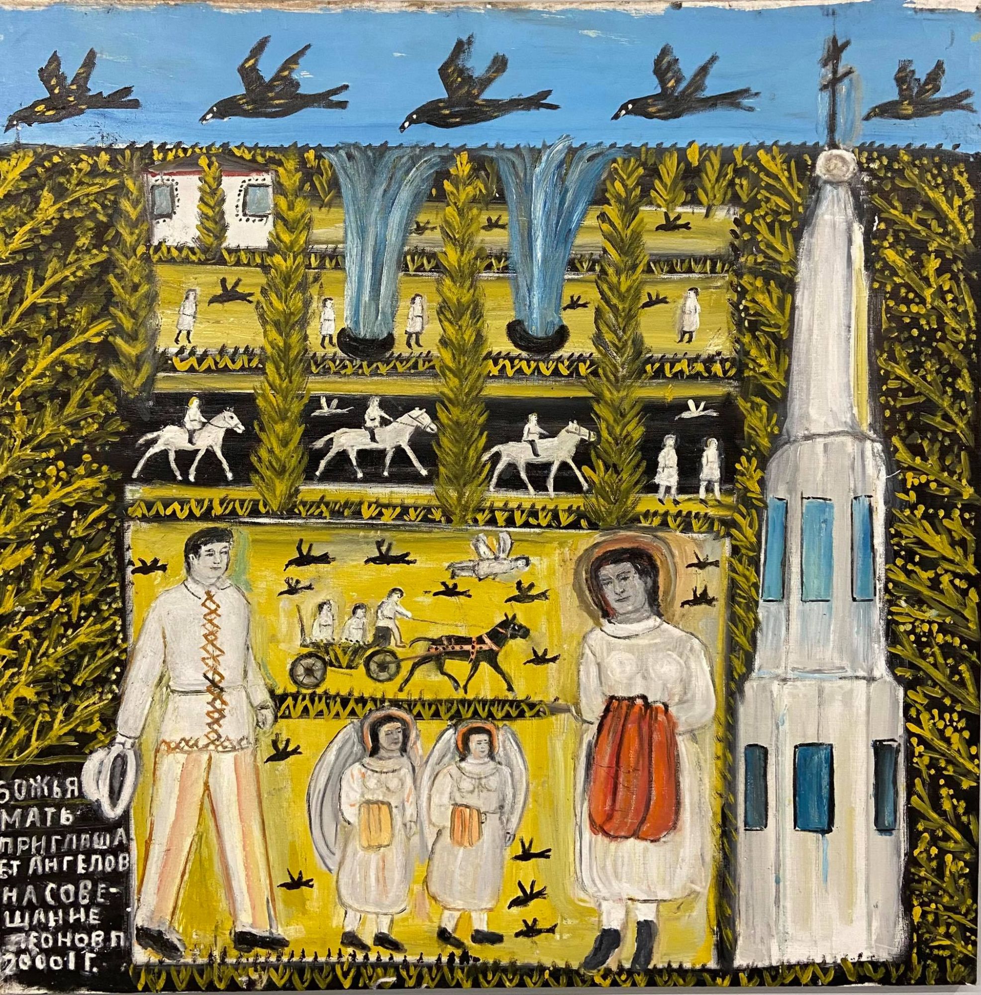 Имя Павла Петровича Леонова известно многим ценителям наивного искусства не только в России, но и за рубежом. Как и большинство наивных мастеров, Павел Леонов - человек трудной судьбы. Он родился в 1920 г. в Орловской области, в селе Волотовское, сменил множество профессий: был библиотекарем, пионервожатым, маляром, жестянщиком, работал на стройке.