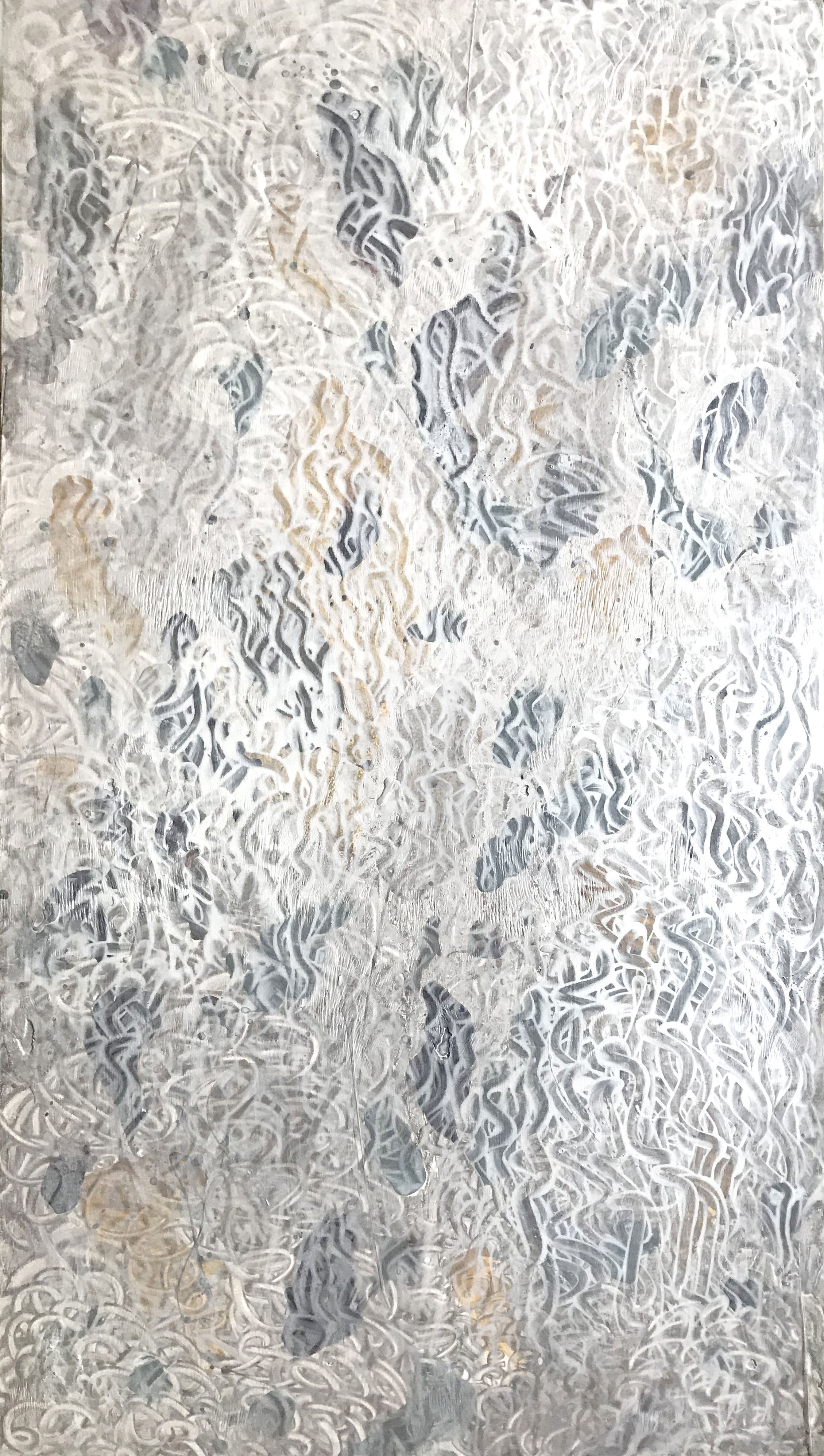 Не ограничивается в материалах и всегда находится в поиске: холст, рисовая бумага, дерево, ручная бумага, органические и синтетические объекты, а также предметы ready made, макрофотография и видео. Создает собственные инструменты для творчества.