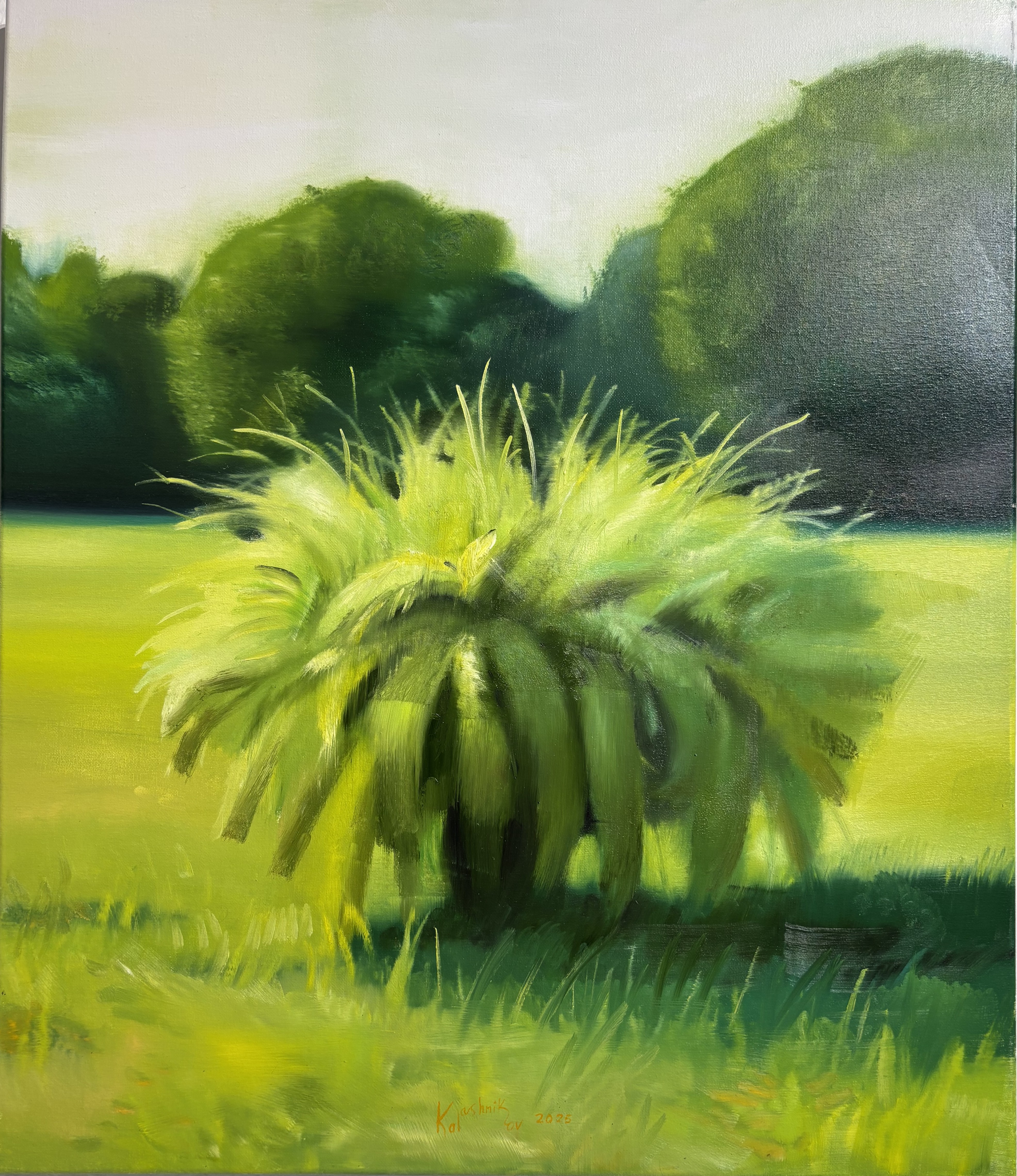 В живописной практике Наримана Калашникова каждый слой краски — это не столько жест утверждения, сколько жест забвения. Его холсты существуют на границе: между образом и его утратой, между намерением и интуитивной ошибкой, между тем, что уже было, и тем, что ещё не стало. Нариман работает с живописью как с памятью, подчиняя плоскость холста логике накопления и вытеснения. Стирая, перезаписывая, заштриховывая, он превращает картину в палимпсест — поверхность, где призраки предыдущих образов продолжают существовать, словно эхо внутри визуального тела. Калашников не столько изображает, сколько позволяет живописи произойти. Материал сопротивляется, отклоняется от замысла, но именно в этом напряжении рождается жест, близкий к духовной практике. Работы художника предельно личны и одновременно анонимны: в них отсутствует нарратив, но присутствует тревожная плотность — как у сна, который не удаётся досмотреть.