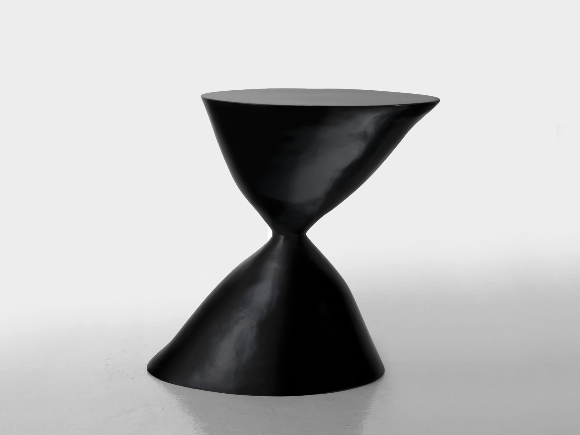 Журнальные столики необычной геометрии из стекловолокна. Элементы мебели, напоминающие песочные часы, согнутые ветром, и которые, кажется, измеряют течение времени не песком, а моментами отдыха рядом с ними.