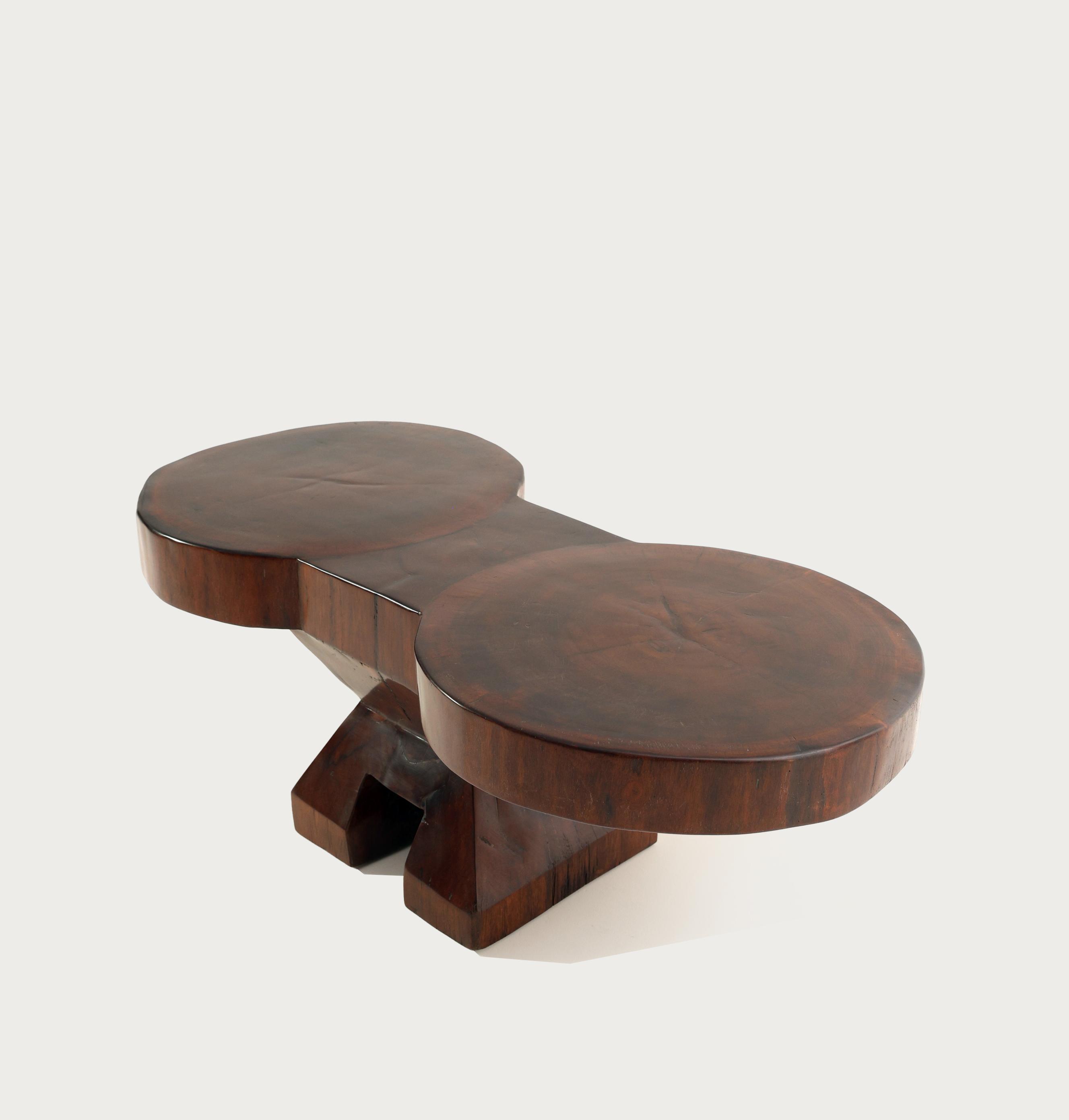 Столик из ценной породы дерева — пример уважительной и бережной работы с материалом: предмет позволяет материалу проявить свою суть в сложном сочетании форм.