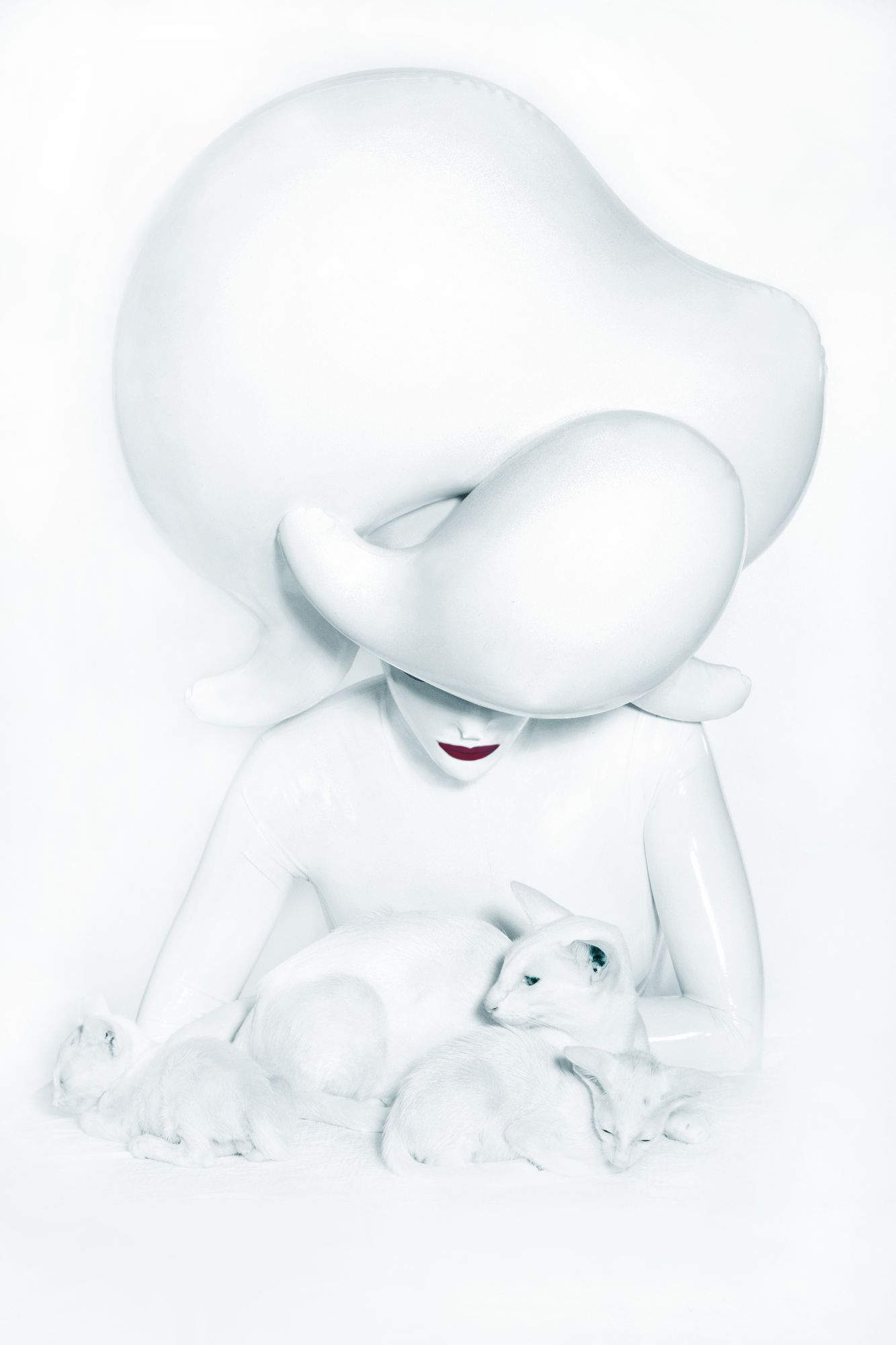 Саша Фролова исследует эстетику будущего, используя латекс и различные полимерные материалы для создания костюмов и скульптур, которые выглядят одновременно монументальными и невесомыми.