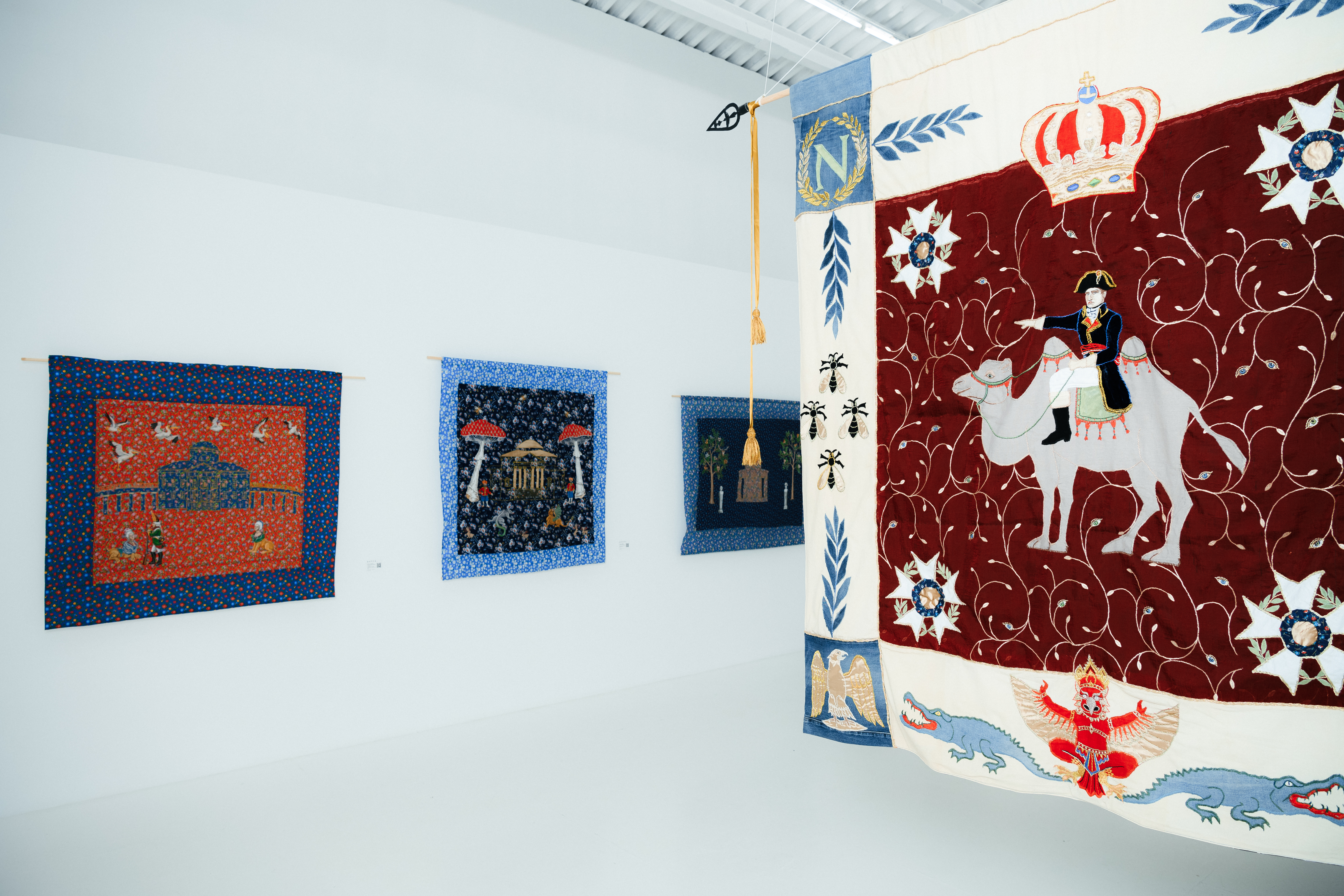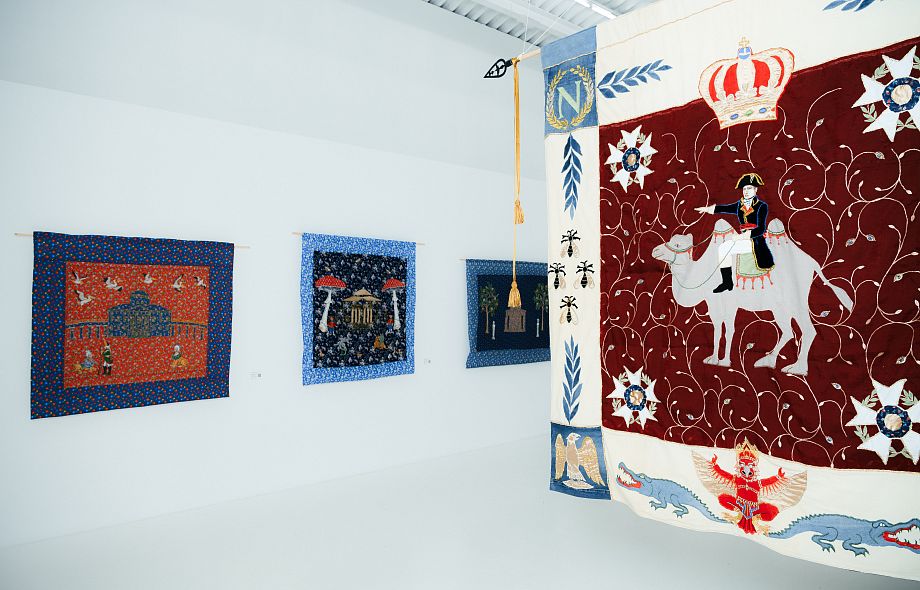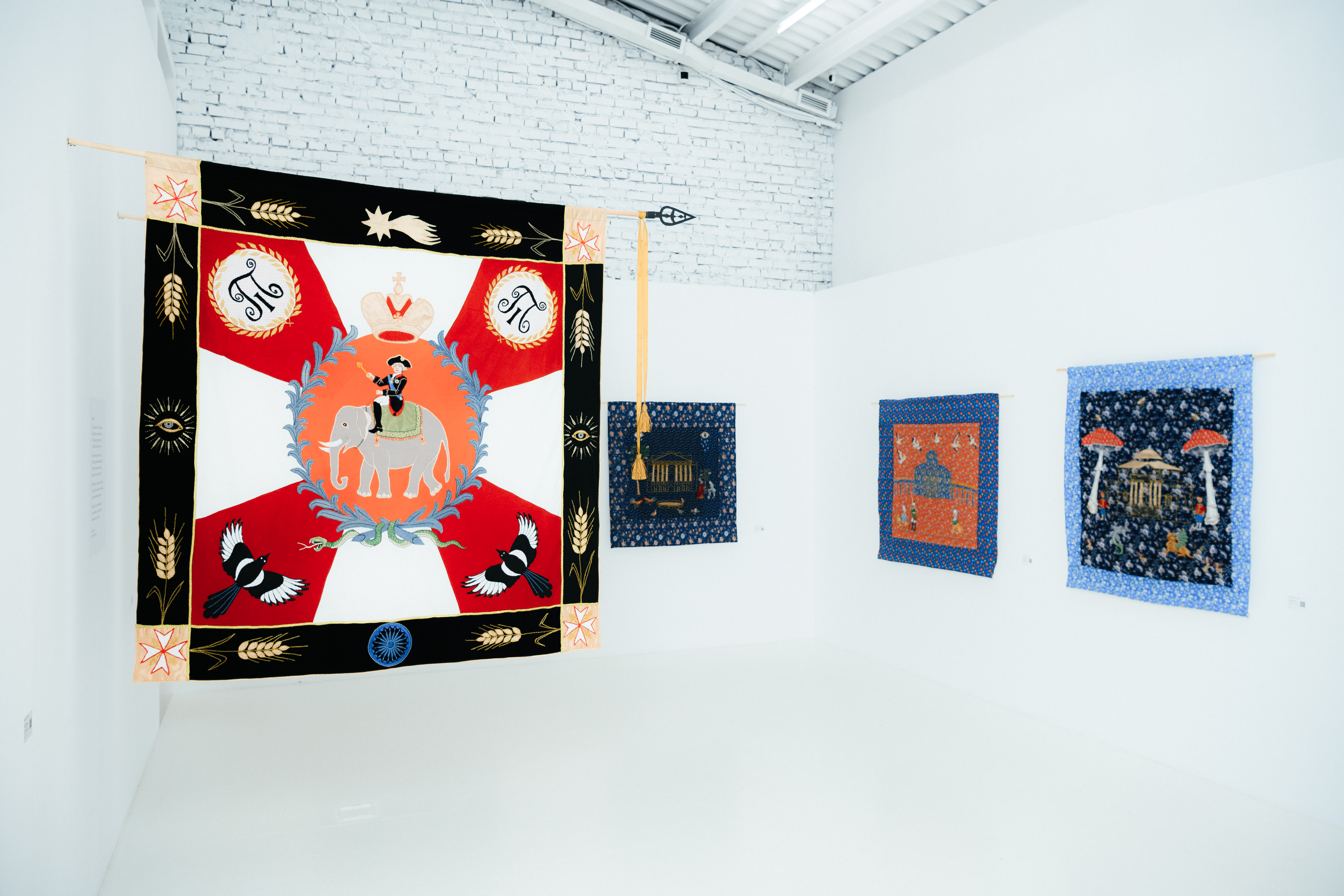 Предметы, представленные на выставке, являются частью повседневного быта и убранства совокупного помещика, просвещенного человека времен Индийского похода. Печные изразцы с аллегорическими сюжетами, на которых запечатлены знаменательные моменты Индийского похода и символические намеки на его мемориальное значение – фрагменты украшений дворцовой или усадебной печи первой половины XIX века. Среди объектов представлены шпалеры в стиле «мильфлер» – культурный оммаж средневековым французским шпалерам. Российские шпалеры сделаны из ситца в цветочек и посвящены русскому палладианству. На них вышиты золотом усадебные постройки архитектора Николая Львова – «венок усадеб». Символы и существа, изображенные с помощью ручной вышивки и аппликации, – часть «провинциального русского ориентализма». Терракотовый «алтарь» из уцелевших фрагментов. Центральная фигура – помещик в образе Химеры – Брата Землемера (архетипа Средней полосы) расположен между гермами – пилястрами Павла I и Наполеона Бонапарта. На латыни, языке вечности, высечено: «Украшенный венцом, Ты будешь нам отцом» – это строка философа, мемуариста и поэта Ивана Лопухина из верноподданнического гимна, посвященного императору Павлу.