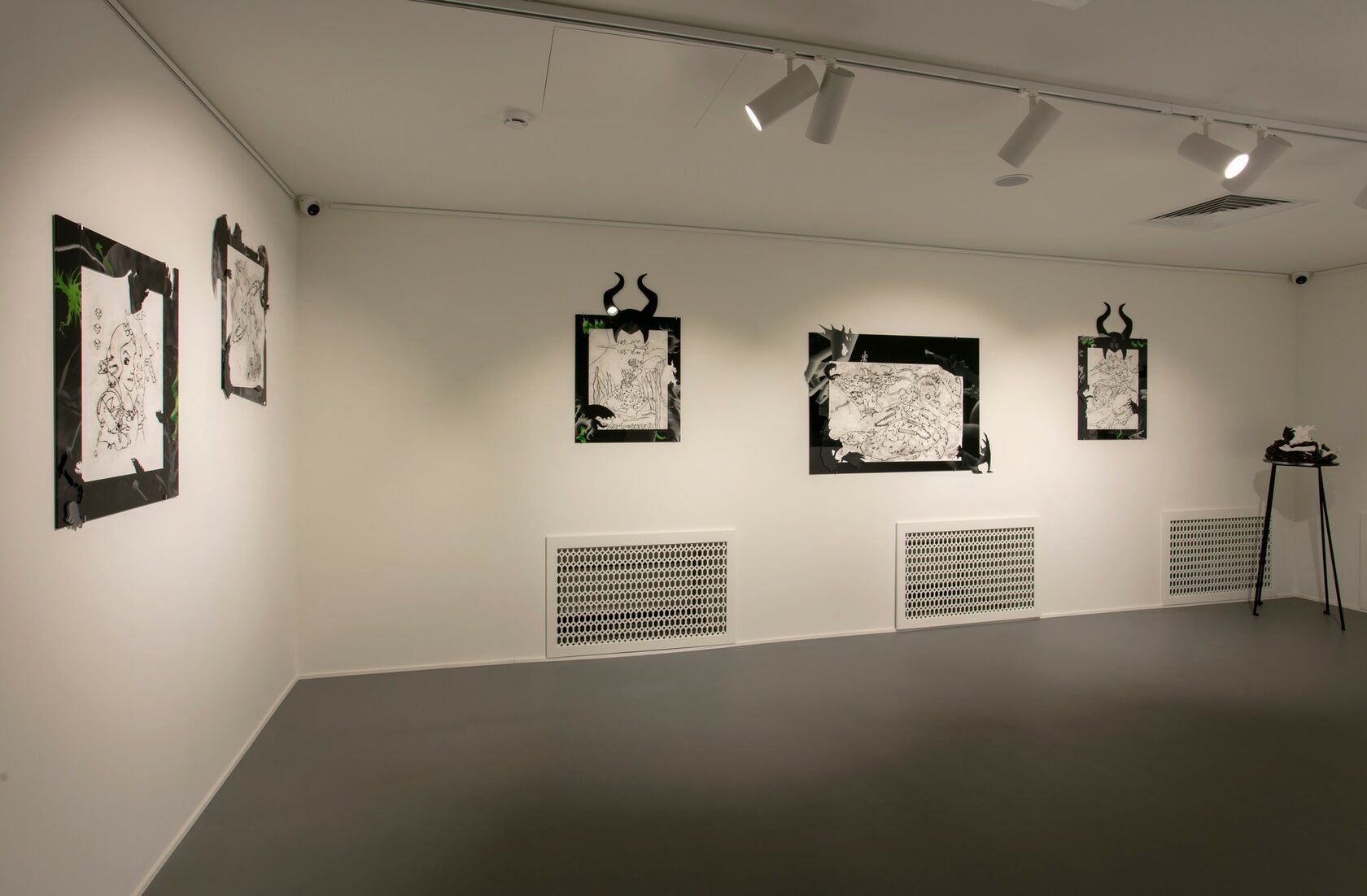 Сказочность Средневековья стала источником идей и образов для современной визуальной культуры – фильмы, сериалы, мультфильмы, видеоигры в жанре фэнтези и фантастики. Поэтому в «средневековых» гравюрах Саши Пучковой появляются персонажи, которых мы уже привыкли видеть с экранов: Малефисента, Белоснежка, даже принцесса из игры «Марио Бразерс» и другие популярные герои. Персонажей современности, главным образом женских, Саша Пучкова тоже трактует по-своему, трансформируя не только внешность, но и характер, придавая им больше индивидуальности: каждая «злая» героиня имеет свою предысторию. Это своеобразный фанфикшен, разрушение стереотипов. В целом это новый тренд: переосмыслять старые сюжеты в этике XXI века с приоритетом ценностей личности и ее особенностей. Соединяя образы разных эпох, художница показывает равнозначность и одновременность их существования в современной культуре и нашем сознании, их трансформацию и адаптацию — так «жителями королевства» вполне могут оказаться Белоснежка — Супер Соник или Огненный змий — Гуффи.