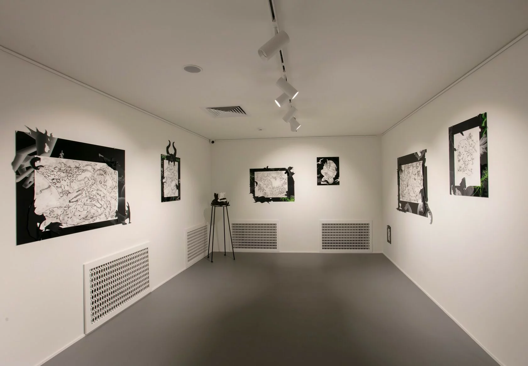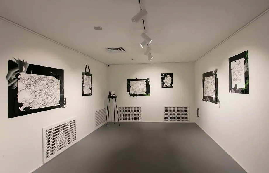 Рамы-объекты также многозначны и придают работам дополнительное измерение. С одной стороны, рамы по формам отсылают к католическим алтарям и обрамлениям манускриптов, с другой, обвивают гравюры словно внеземные существа, напоминая о фантастических фильмах. Такую смешанность, символичность, присущую массовой культуре, сравнивают с народным средневековым мышлением, а наше время, в том числе и поэтому, называют «новым Средневековьем».