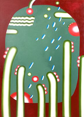 Композиции в урало-сибирской росписи были организованы вертикально либо центрично при помощи системы модулей, предполагающей свободную компоновку. Красил Макар использует импровизационные возможности самой живописной техники и раскладывает геометрию традиционного рисунка на универсальные составляющие элементы. Оказавшись в буквальном смысле «разбросанными» по плоскости и лишенные гравитации, эти детали-фрагменты деформируются и перекомпоновываются. Замкнутое прежде пространство изображения будто под действием центробежных сил раздвигается, преодолевая условные композиционные границы.