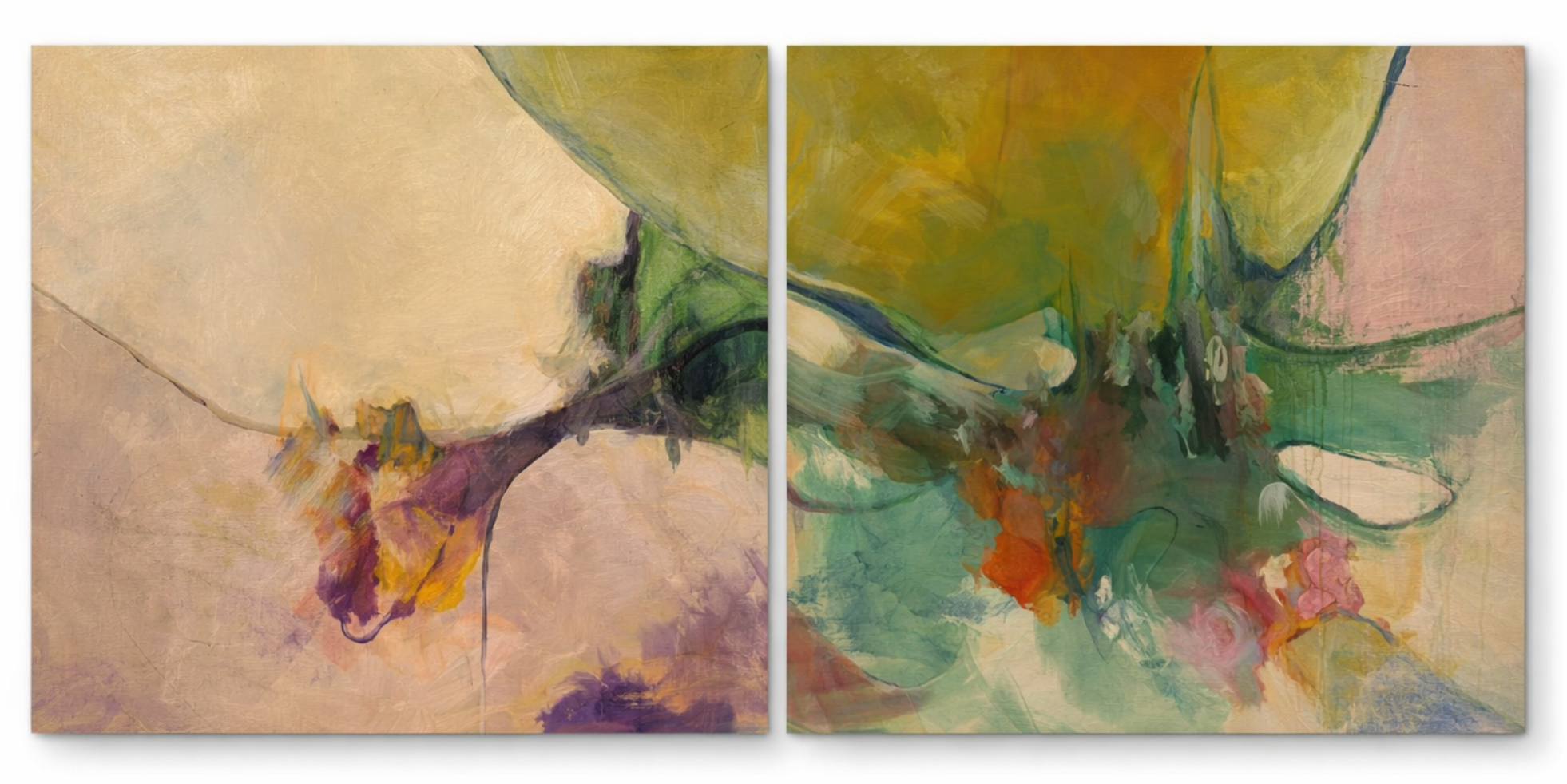 Центральная тема творчества художницы – это человеческое сознание, конфликт разума и сердца. Абстрактные формы на полупрозрачных холстах имеют под собой разумное начало, это герои из сновидений, трансформированные в яркие цветовые пятна. Пограничное состояние между реальностью и фантазией можно ощутить, погружаясь в сон, или пытаясь восстановить в памяти значимые события своей жизни. В обоих случаях те образы, которые мы увидим, будут далеки от реальной действительности.