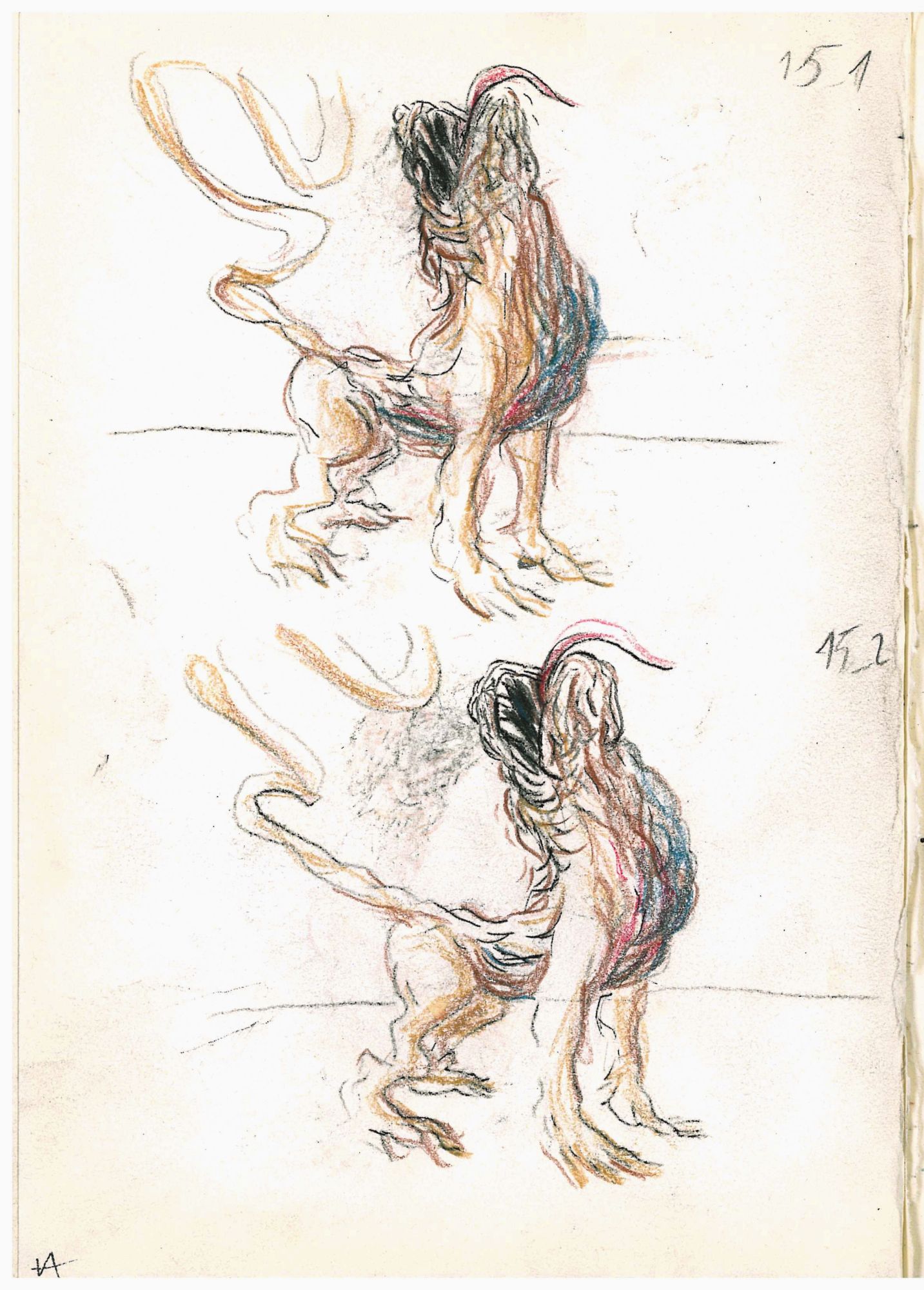 Бумага, цветные карандаши, соус, уголь