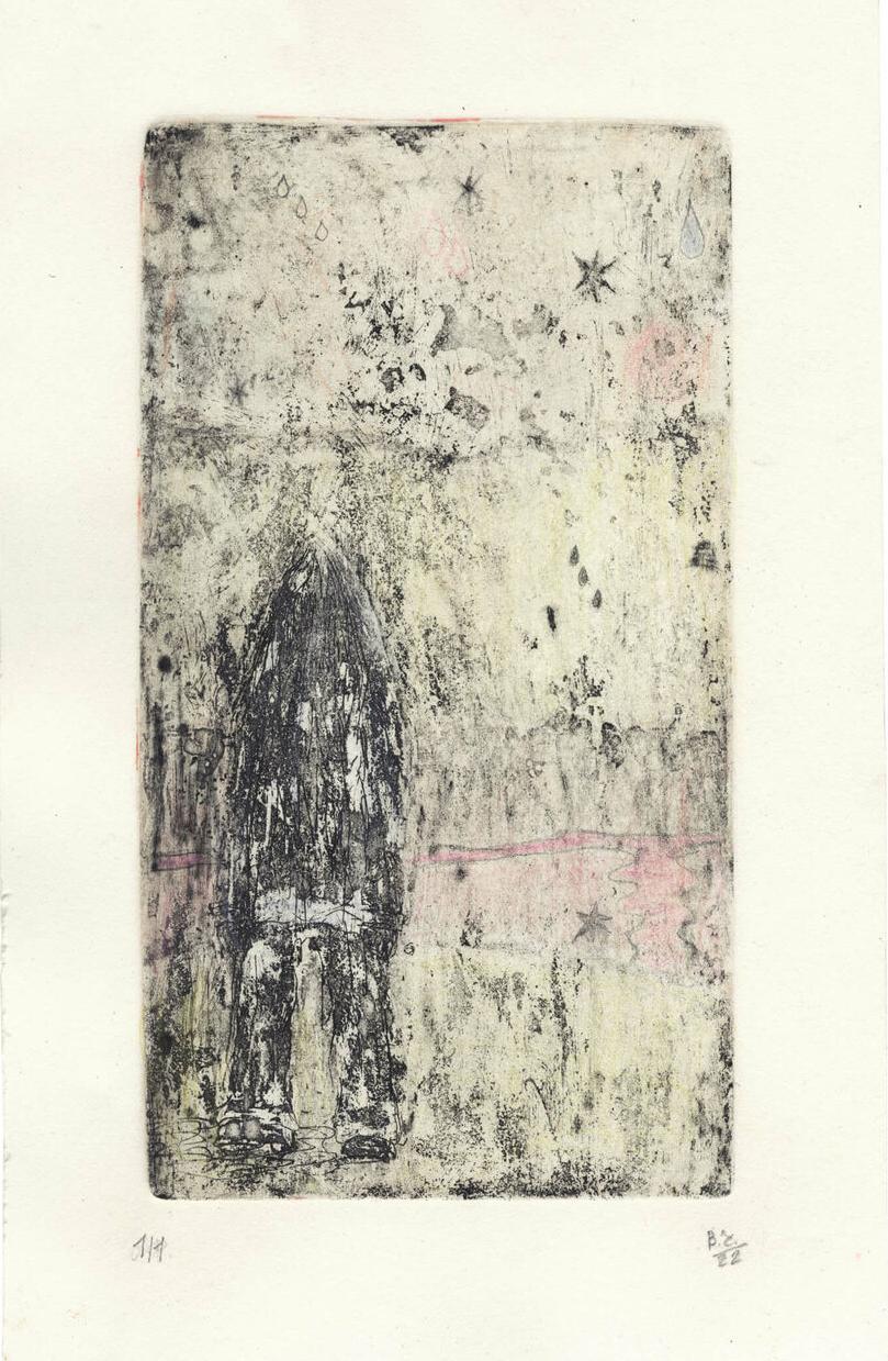Бумага, офорт, сухая игла, акватинта, открытое травление, карандаш