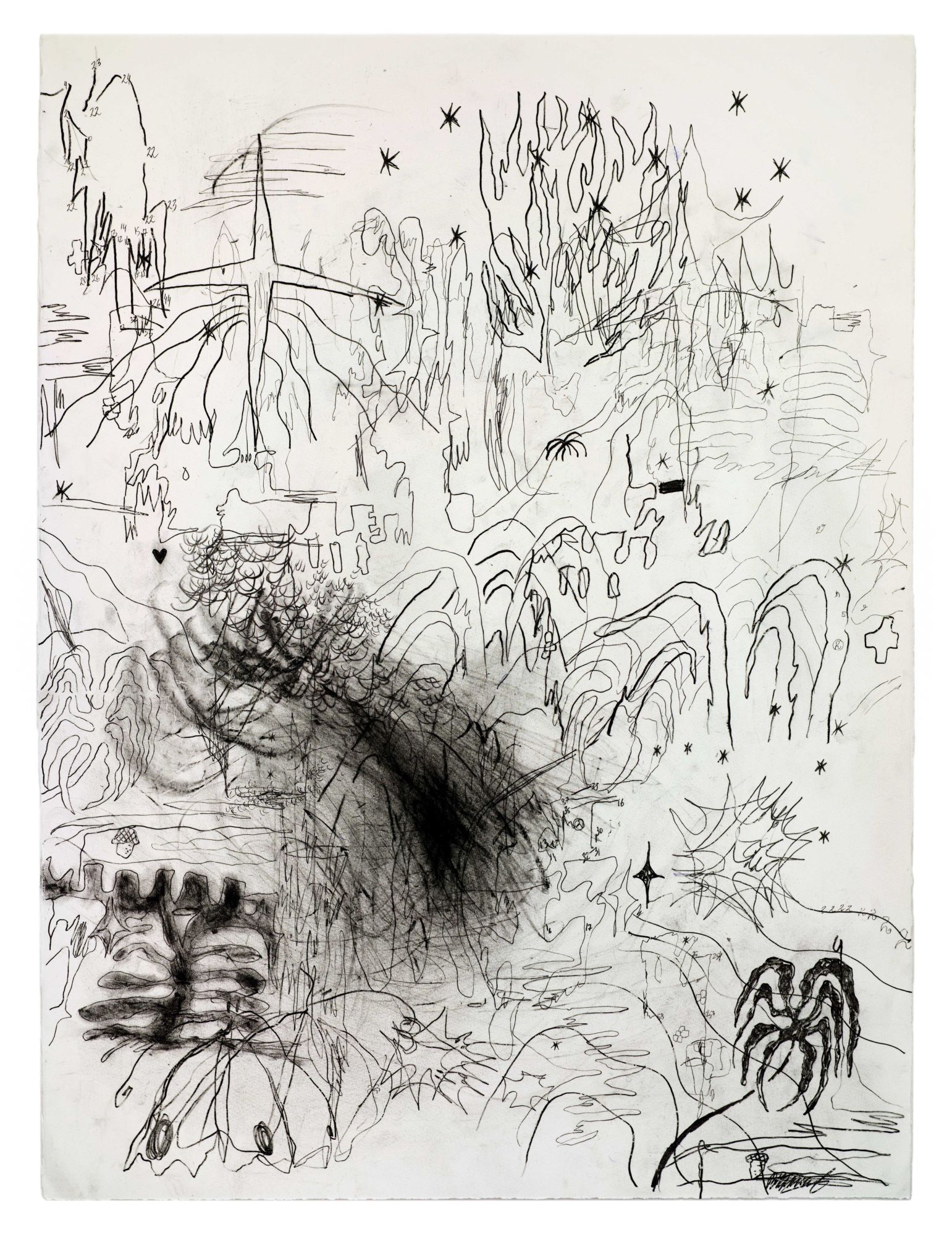 Хлопковая бумага, карандаш, гуашь, копировальная бумага