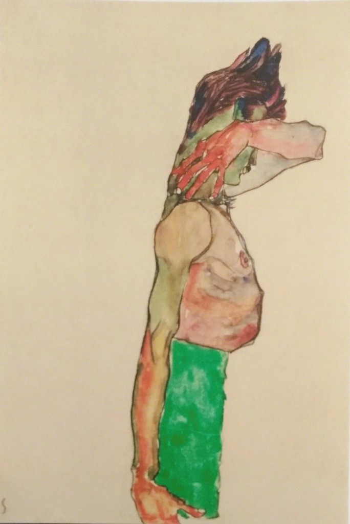 Шиле жил в Вене в эпоху зарождения фрейдизма, когда в обществе впервые заговорили о важности сексуальности человека. Художник начал исследовать эту тему, создавая автопортреты. Ранее в мире искусства ню и автопортрет были разными жанрами. Шиле решил их объединить.