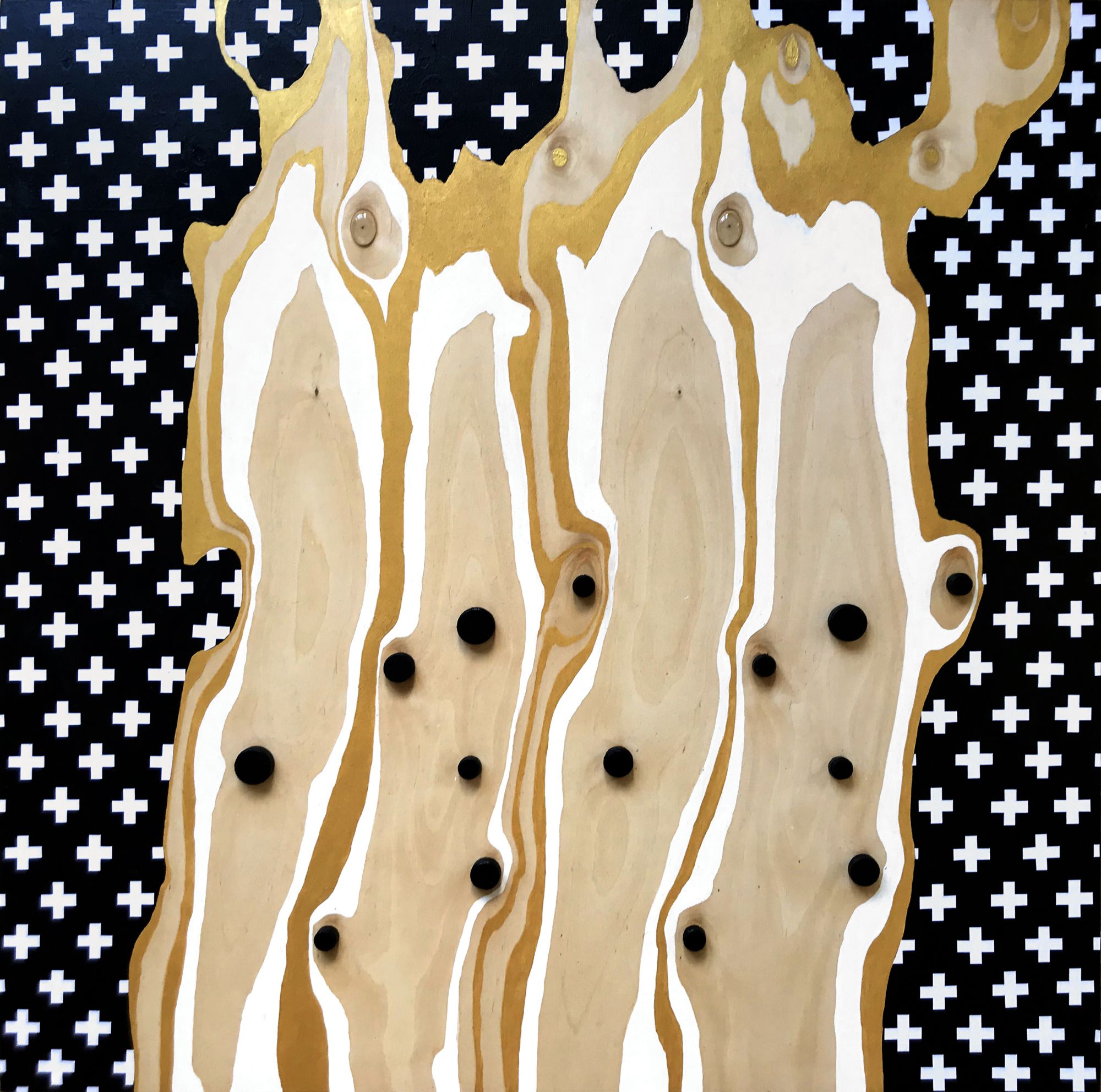 Не ограничивается в материалах и всегда находится в поиске: холст, рисовая бумага, дерево, ручная бумага, органические и синтетические объекты, а также предметы ready made, макрофотография и видео. Создает собственные инструменты для творчества.