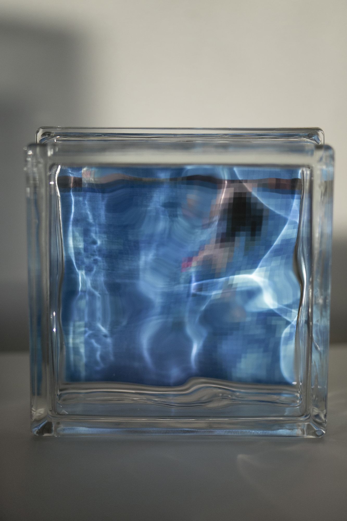 Работы экспонируются через стеклоблоки — архитектурные элементы, которые пропускают свет, но искажают видимость. Стеклоблоки превращаются в пиксельные контейнеры памяти — метафорические экраны, на которых репрезентация тела становится зыбкой, недоступной, но ощутимо присутствующей. Проект говорит о парадоксе: о стыде, который действует ещё до изображения, до кадра. Он исследует визуальные следы неснятого — и предлагает способ вернуть им хрупкую форму существования.