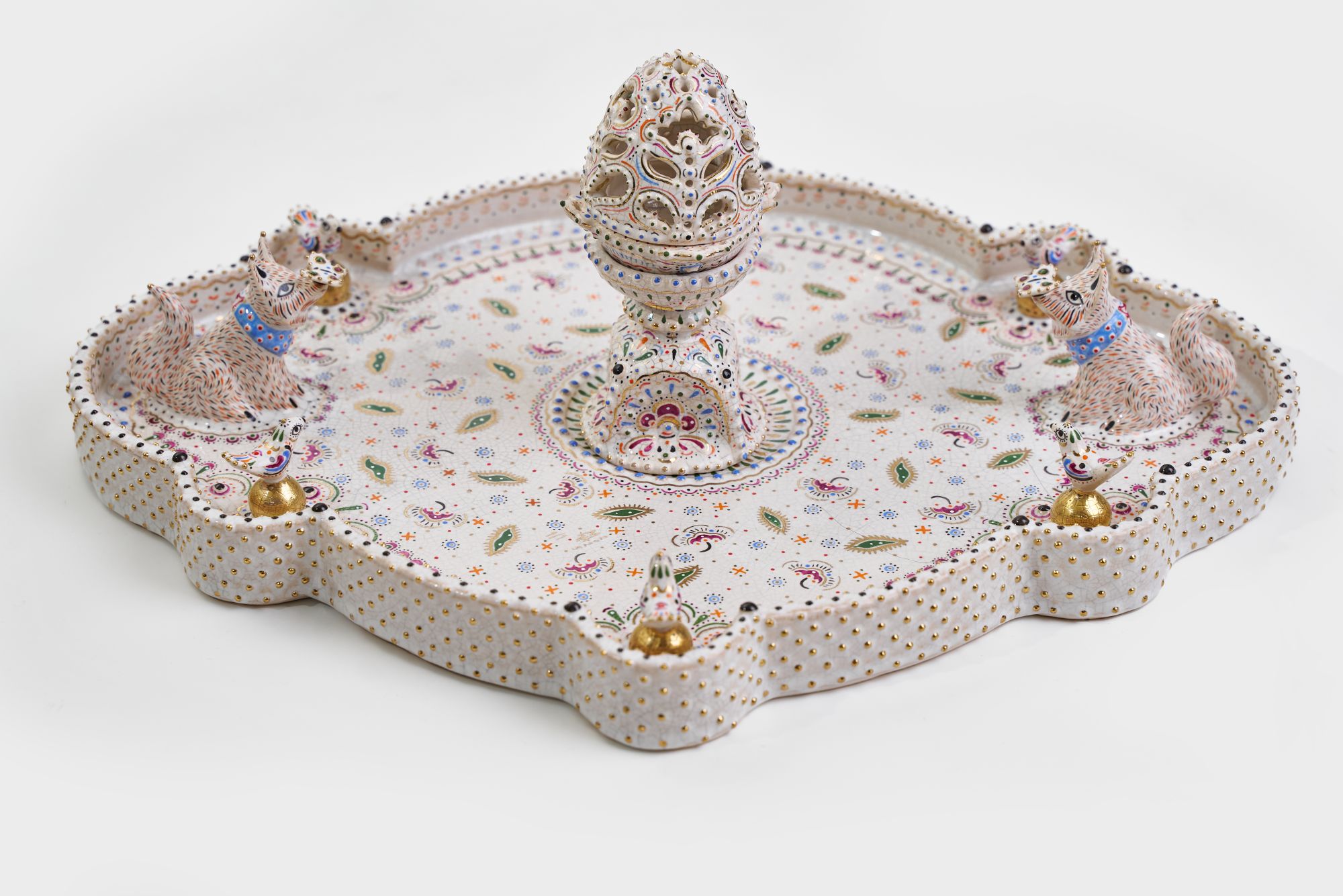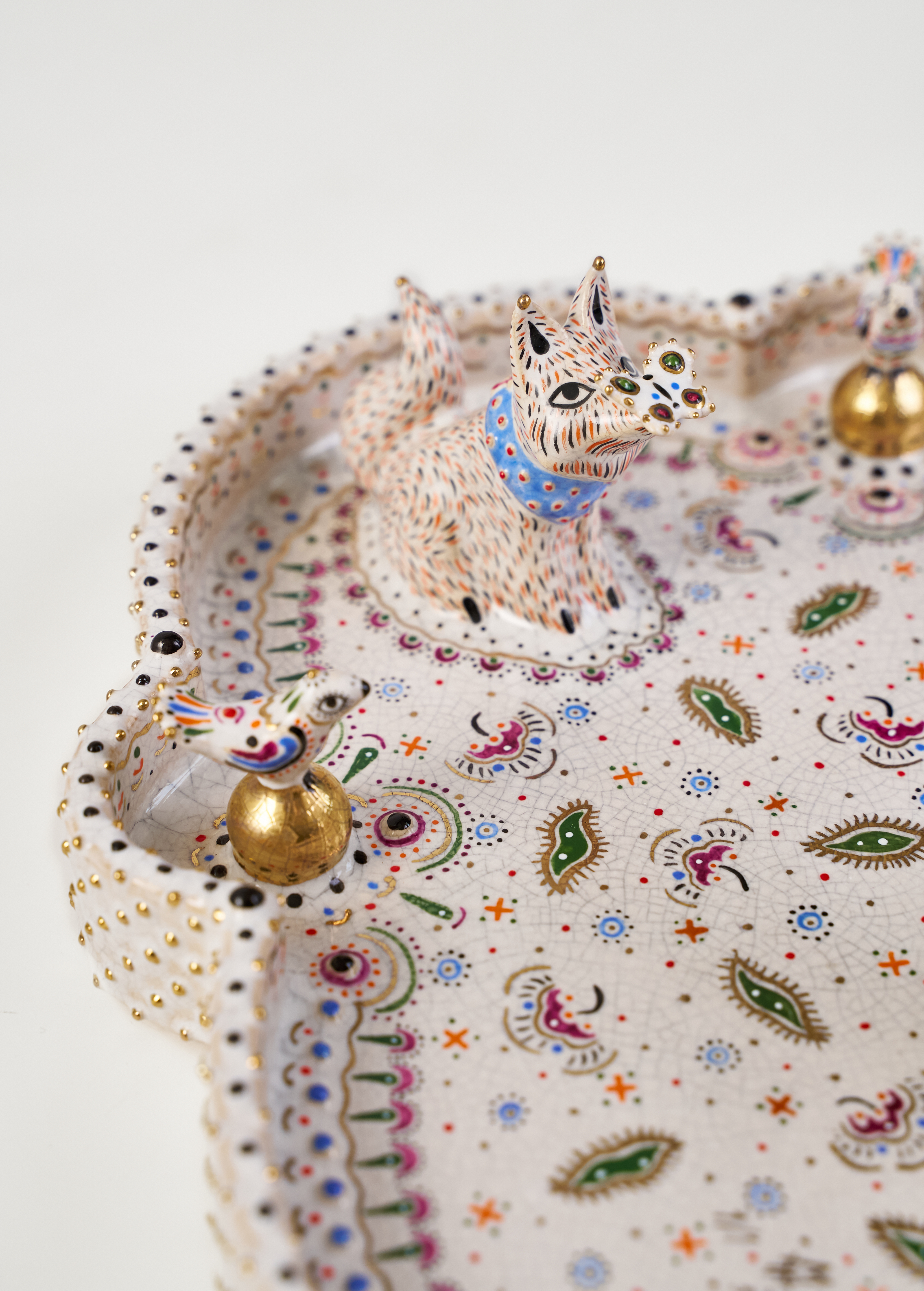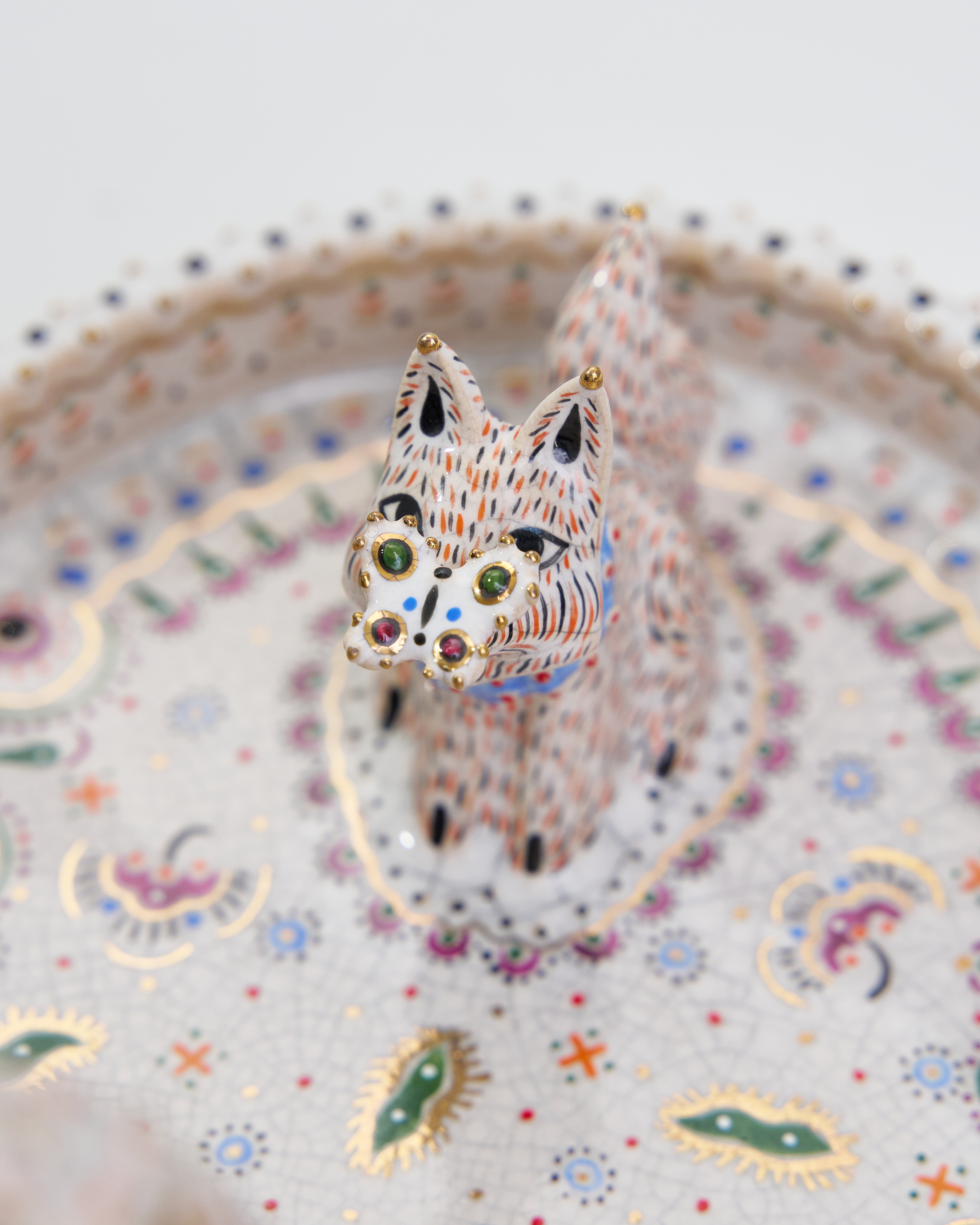 Несколько лет назад Никита Макаров интуитивно предугадал возрождение интереса к декоративно-прикладному искусству — керамика стала для него новой художественной формой, в которой он умело сталкивает разные эпохи и культуры. Уже спустя 1,5 года с момента создания первой скульптуры Макаров основал свой собственный бренд Makarov Ceramics. Его миссия – возрождение традиций прикладного и декоративного ремесла, актуализация данного направления в искусстве и возвращение внимания к исконным канонам красоты — органичной, понятной и безусловной. В своих работах основатель Никита Макаров обращается к теме сказочных сюжетов – жанру, который на протяжении веков неизменно вдохновляет людей искусства и моды на творчество. Коллекция «Таинственный лес» — волшебный мир мифогенных существ и образов, выполненный в керамике и декорированный надглазурной росписью, золотом, платиной и кракле.