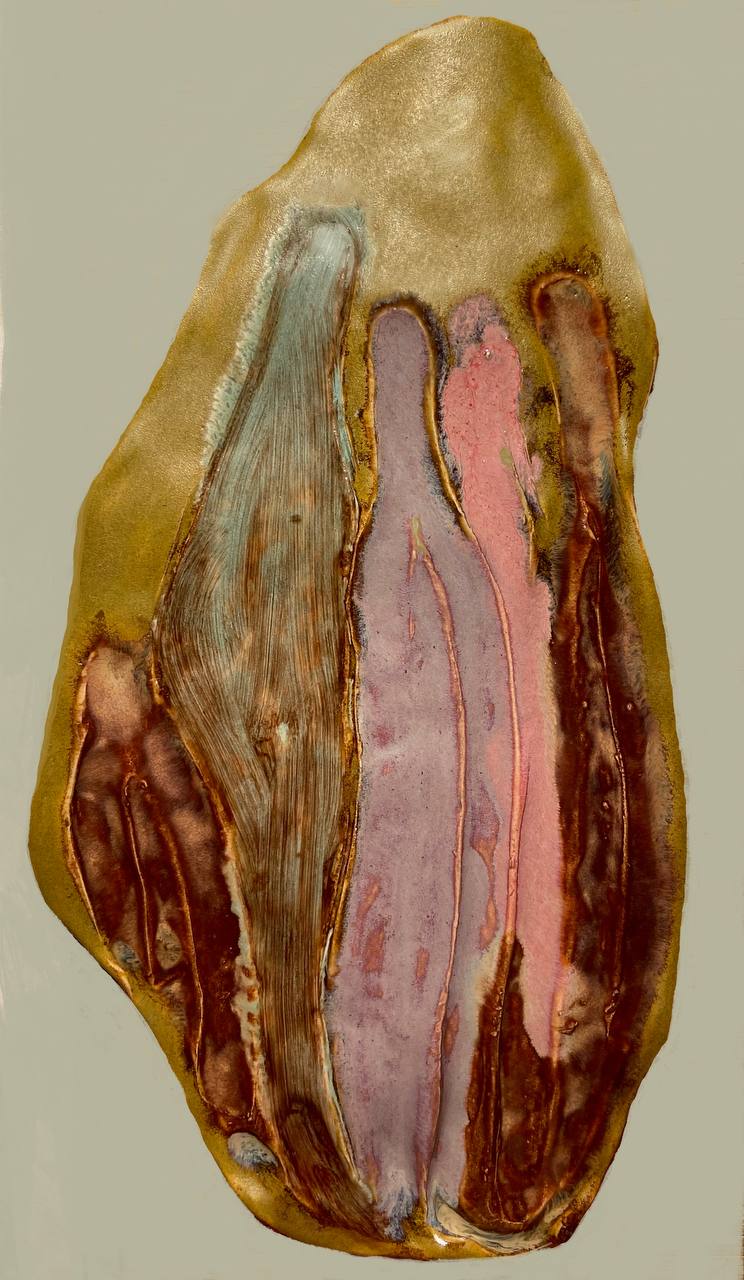 Серия керамики «Рельефы» из проекта «Племя Уранди» является своеобразным барельефом, сохранившим отпечатки неопознанных силуэтов. Эти визуальные объекты, заполняя почти все пространство, остаются прозрачными тенями, переплетаясь между собой. В этих небольших предметах Оля Аксенова размышляет о роли коллективности, ее значениях и видах, выражаясь подобным языком форм.
