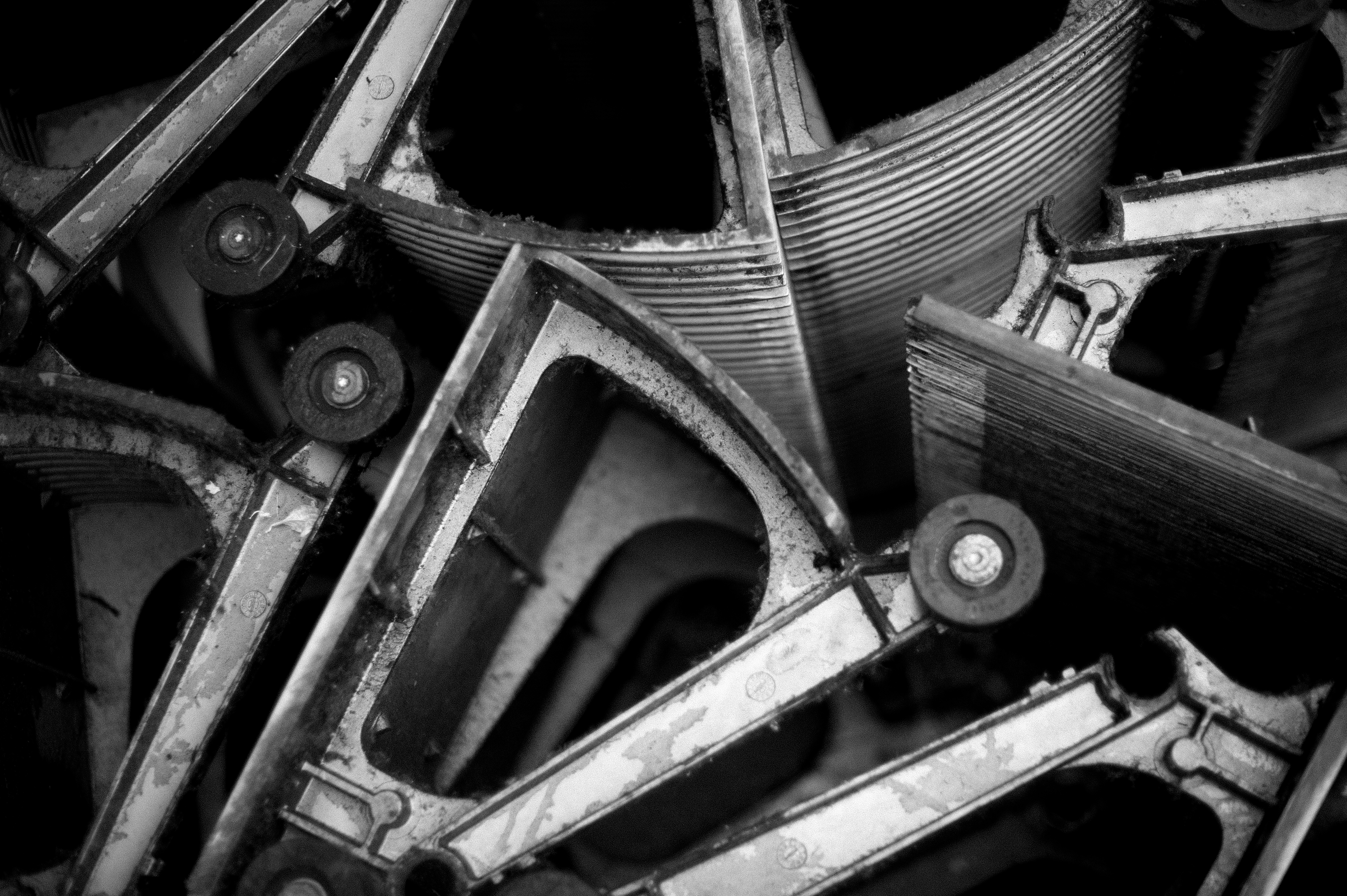 На фото запечатлены детали отслужившего своё разобранного эскалатора, примостившегося на заднем дворе спального района. Меланхолия техники, в обещание будущего которой уже заложена мысль о неминуемой остановке.