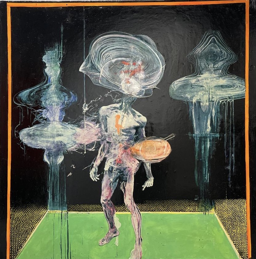 Художник также создает индустриальные пейзажи, трансформированные в футуристичные образы города, используя кузбасслак — каменноугольную смолу, что отсылает к промышленному контексту малой родины.