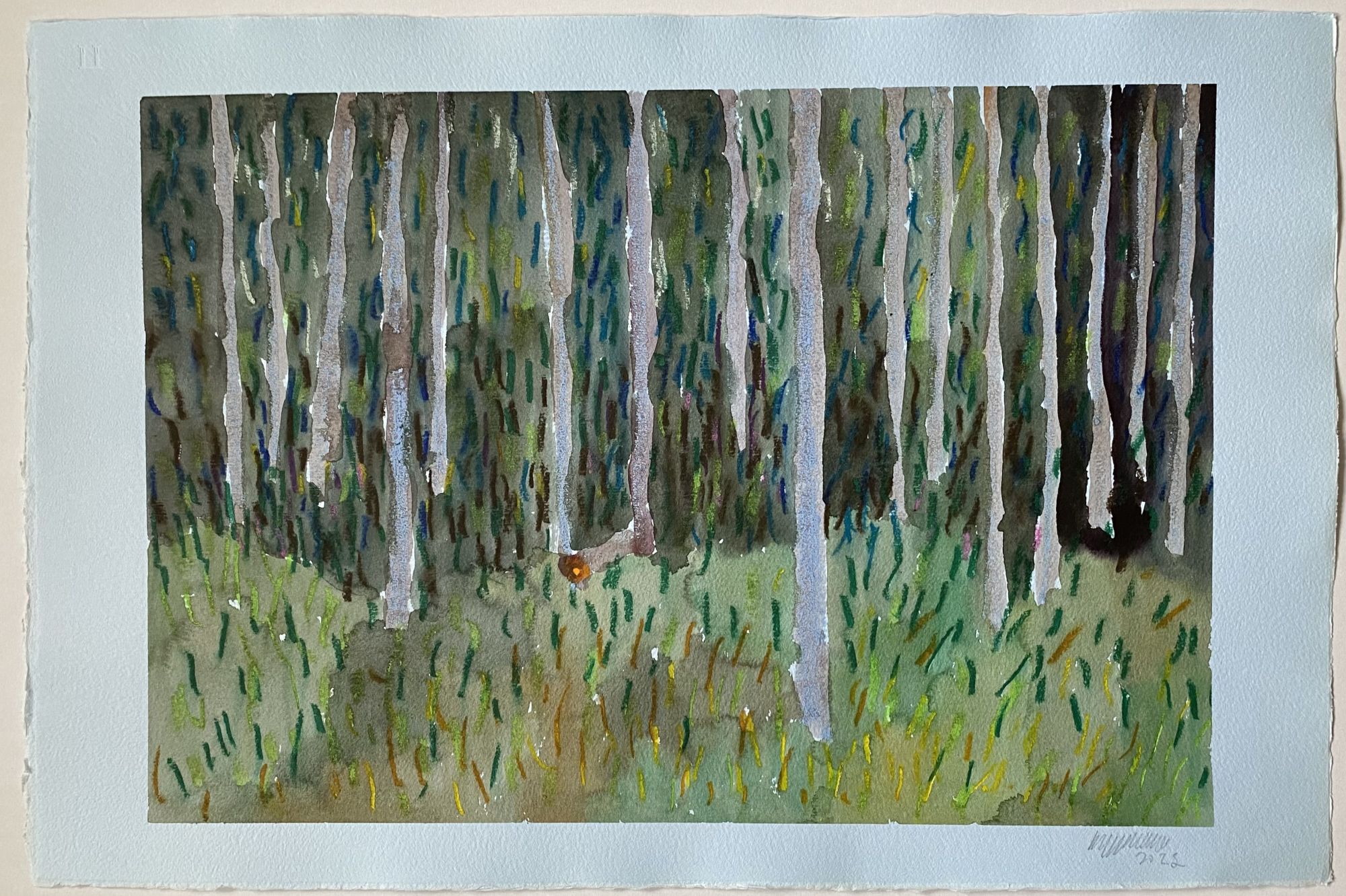 и цвета, связав их с цифровой оптикой. Большую роль на этом пути сыграла пандемия: художник рассказывает, что социальные сети стали своего рода пленэром, и он каждый день рисовал виды с монитора. Фигуративный характер работ стал более явным, и изменился характер мазка: подвижный и пластичный ранее, теперь от стал более аморфным, намеренно слабым – так, что в рисунке силуэтов предметов и фигур остаются незакрашенные щели, полоски белой бумаги или загрунтованного холста. Пересказывая – вернее, пере-показывая цифровое изображение, автор подчеркивает его плёночный, неполнотелый характер, зыбкость и бестелесность. Социальные сети предстают как мир желаний, причуд и миражей.