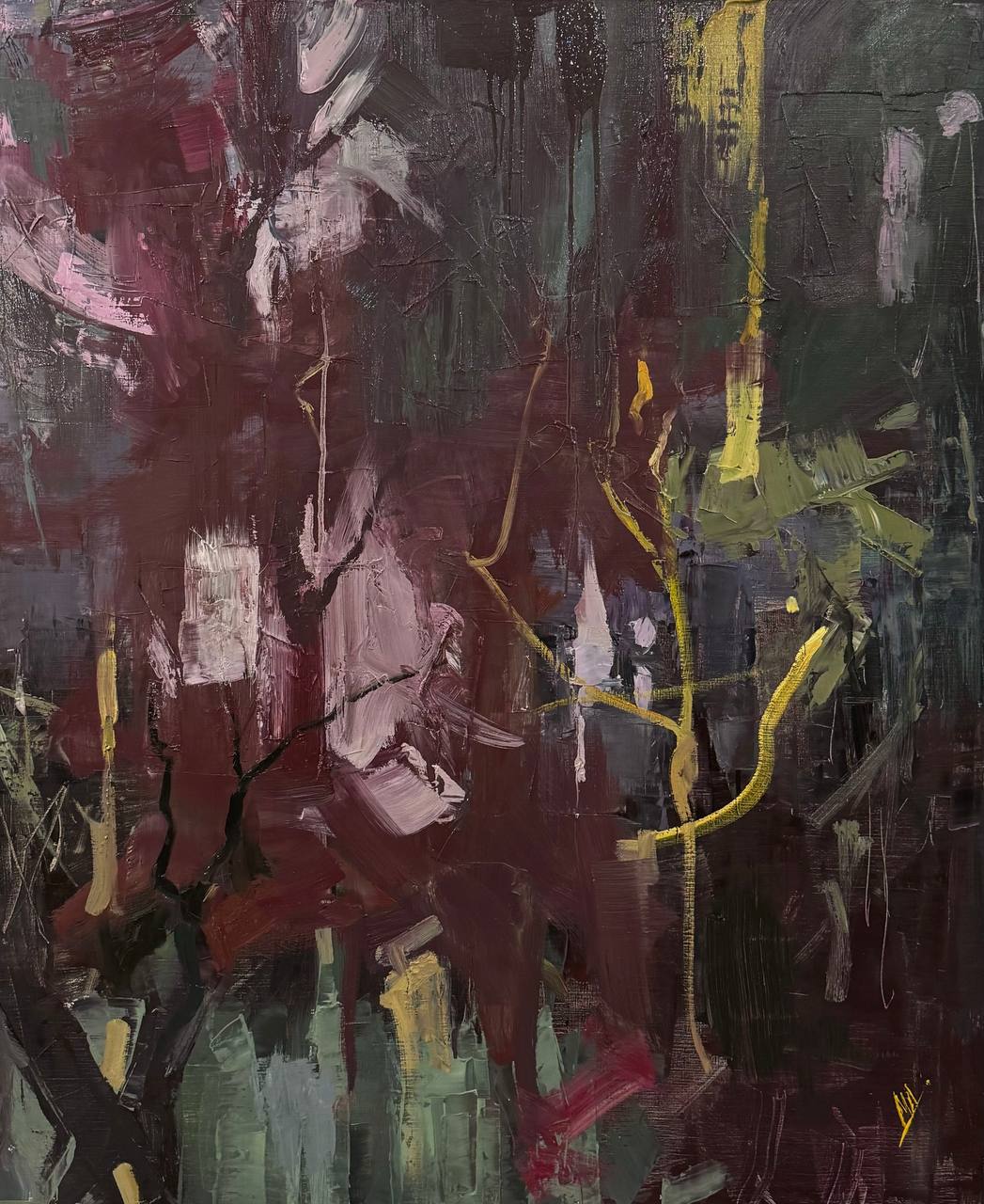 Мария Дергунова (р. 1992) — мультидисциплинарная художница, работает с живописью, инсталляцией и ассамбляжем. Родом из Саратова, живёт и работает в Москве. Исследует темы симбиоза и разрушения, взаимодействия человека и природы, используя живопись, металл, бетон, дерево и органические материалы.