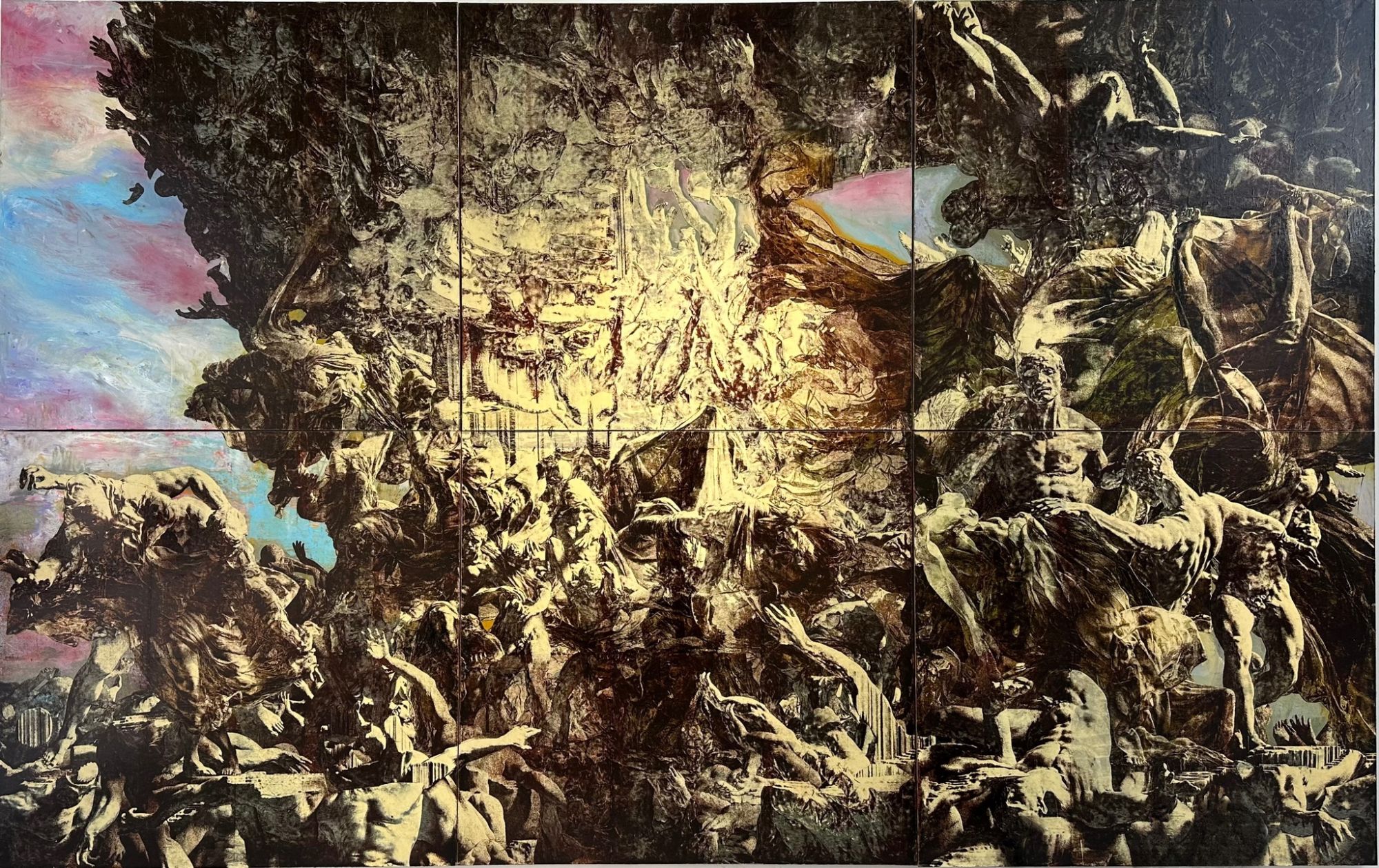 Художник также создает индустриальные пейзажи, трансформированные в футуристичные образы города, используя кузбасслак — каменноугольную смолу, что отсылает к промышленному контексту малой родины.
