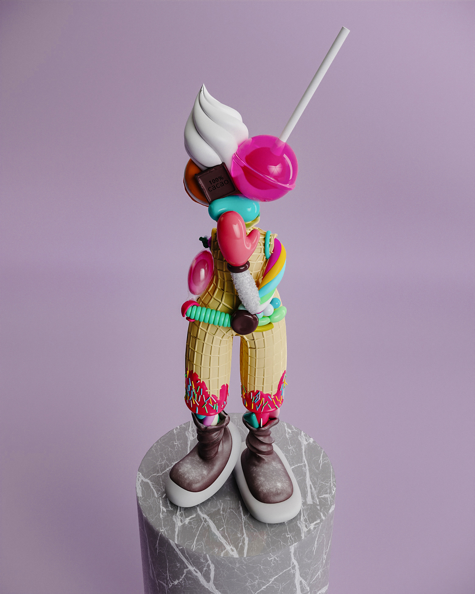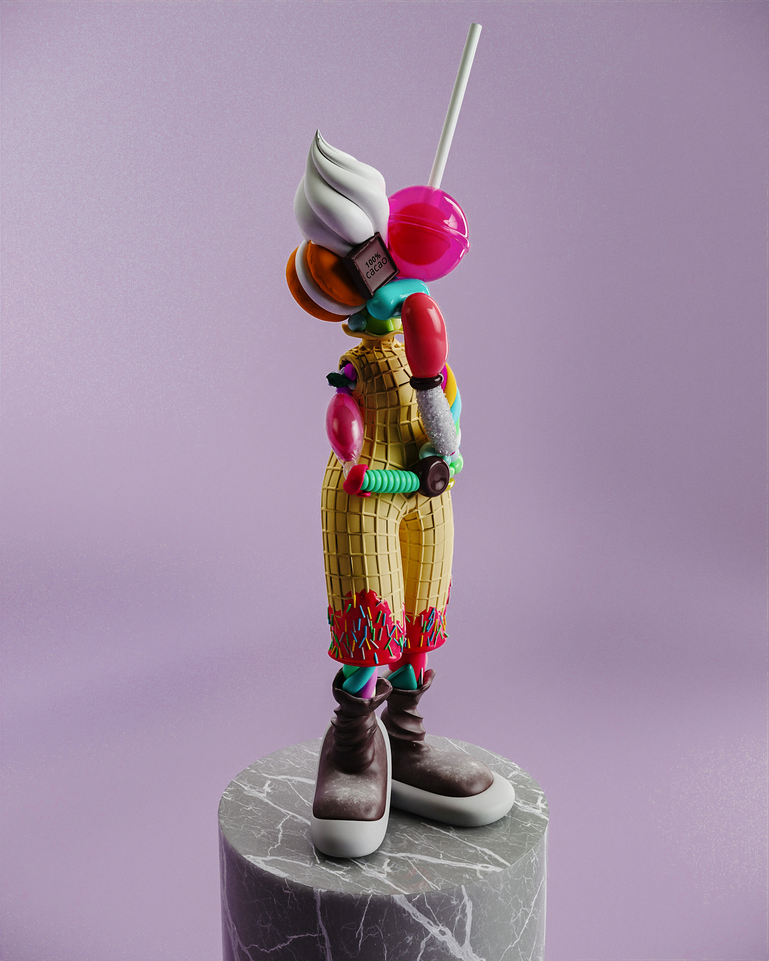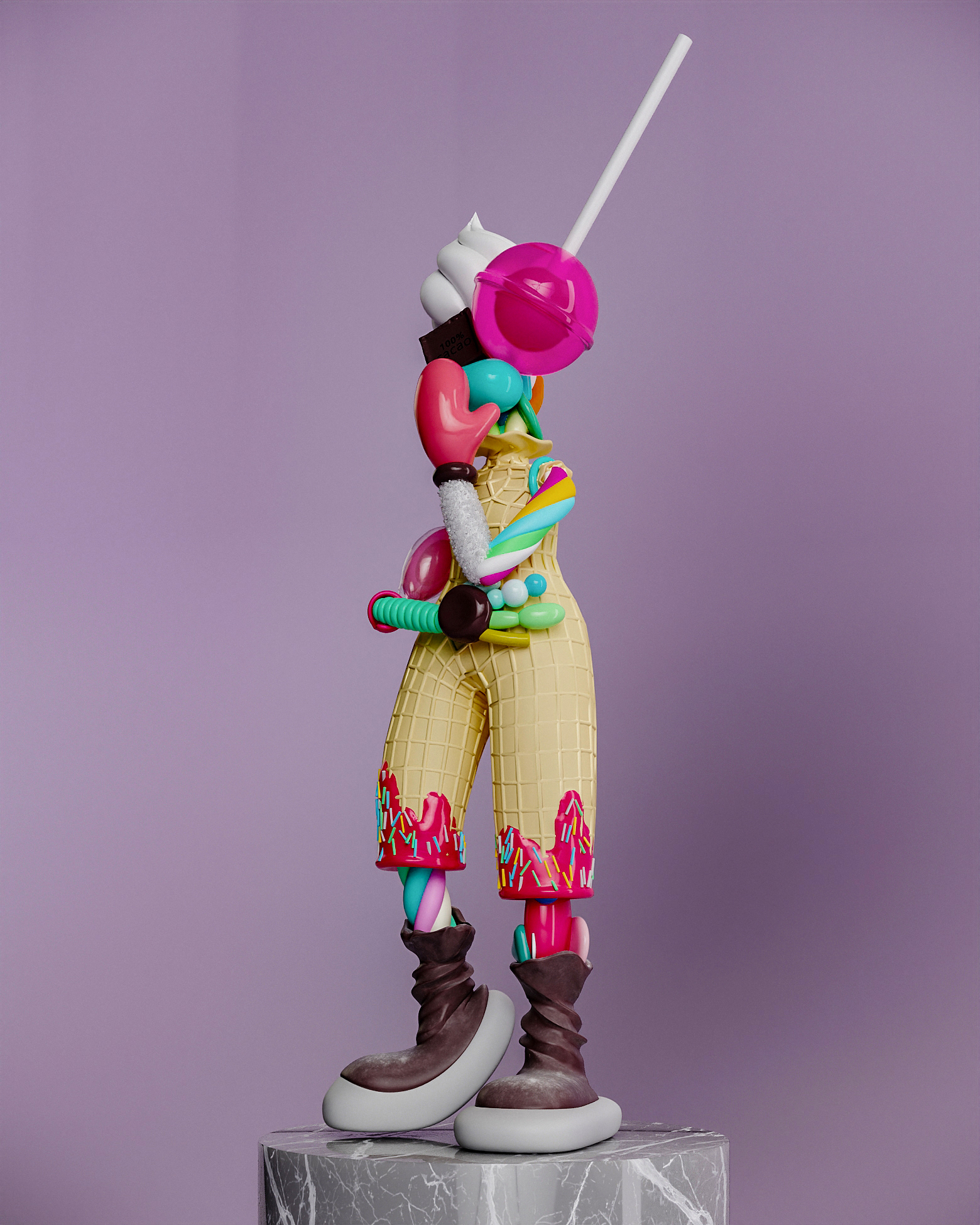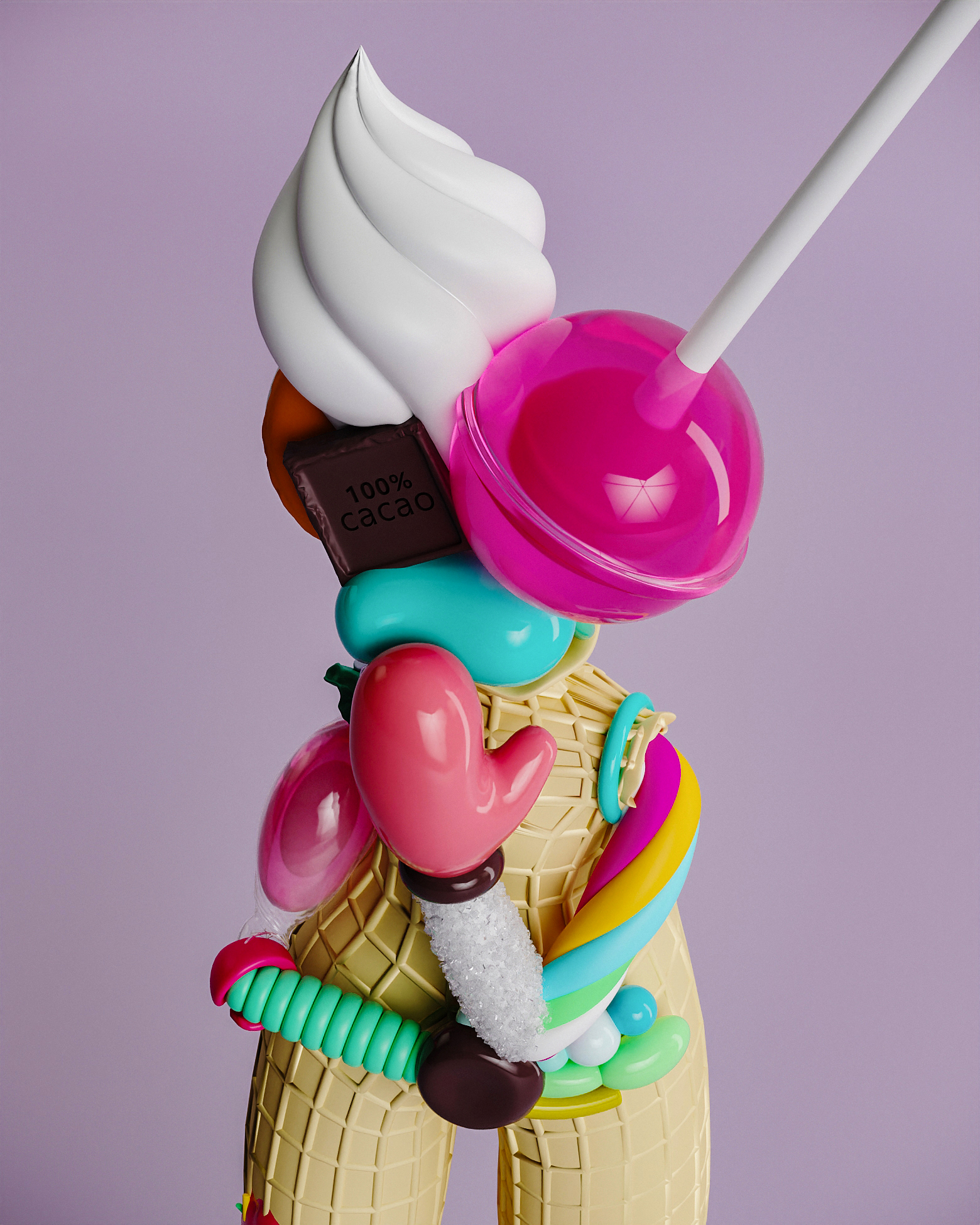 Candy Lady воплощает нашу привязанность к моментальным удовольствиям, таким как сахар и излишества. Она кажется сладкой и манящей, но это иллюзия — за ней скрывается глубокая зависимость, которую трудно распознать. Это произведение искусства олицетворяет постоянную борьбу между кратковременным удовольствием и долгосрочным благополучием. Как и в жизни, сладкие моменты могут быть соблазнительными, но важно помнить о последствиях, к которым они могут привести.