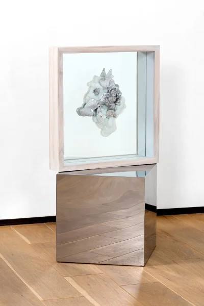 Алюминий, пластик, фрагменты ракушек, зеркало, деревянная рама (ясень)