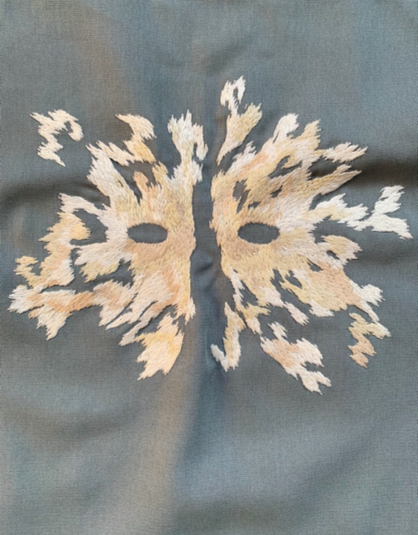 В проекте «Комната страха» маски и головы присутствуют в форме миражей и призраков, смотрящих на нас из узоров и пятен. Маски из серии «Метаморфозы» в чем-то продолжают тему иллюзорности и зрительного восприятия. Здесь мне интересна не только призрачность образов, но и сама структура вышивки. Она, подобно живому организму, разрастается на ткани, меняя ее. Карнавальные маски – это попытка посмотреть на маску, как на утилитарный объект. Если раньше мои маски были как призраки, лишь намекающие на свое назначение, то в карнавальной серии я впервые сделала маску, которую можно носить».