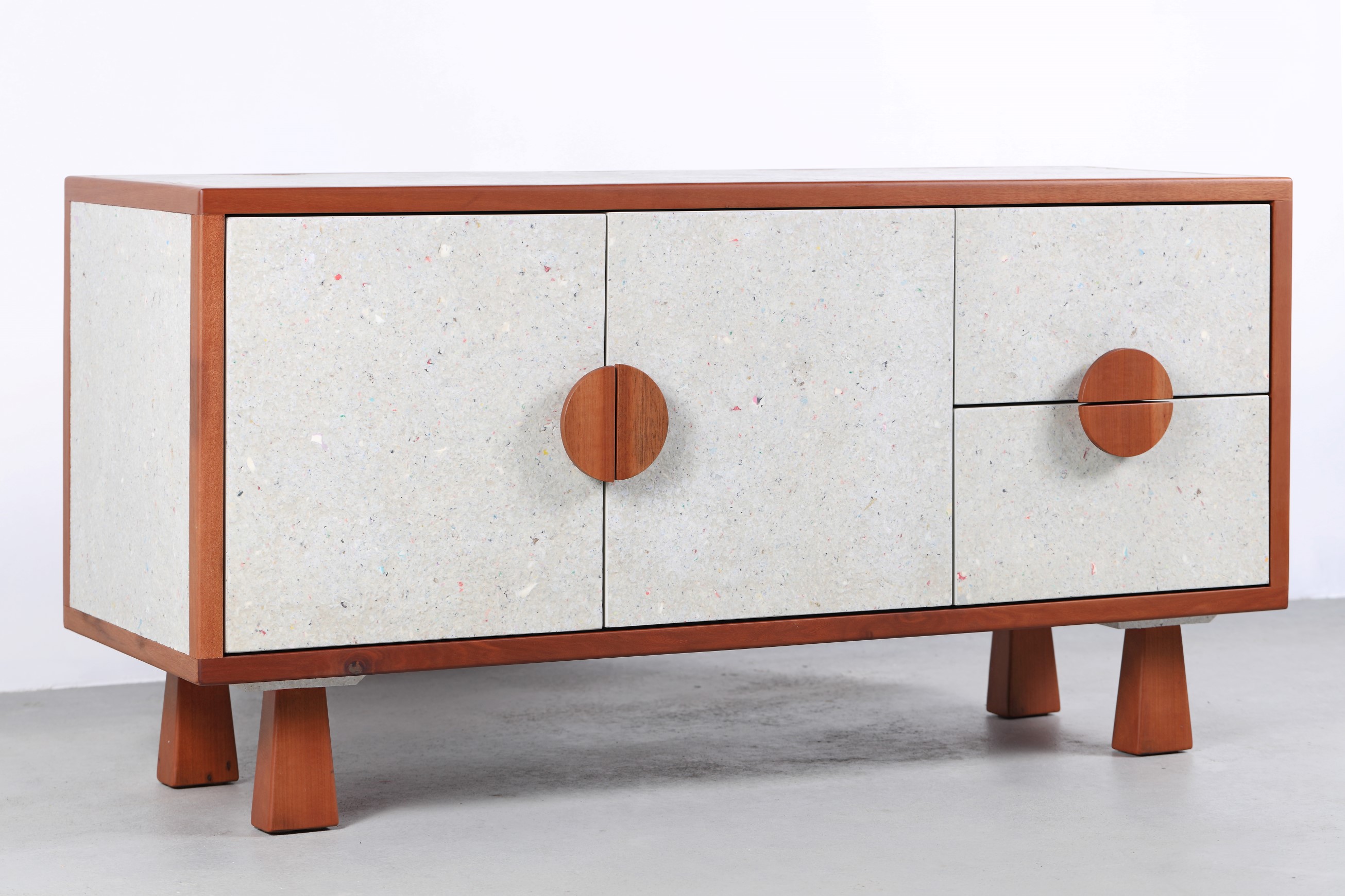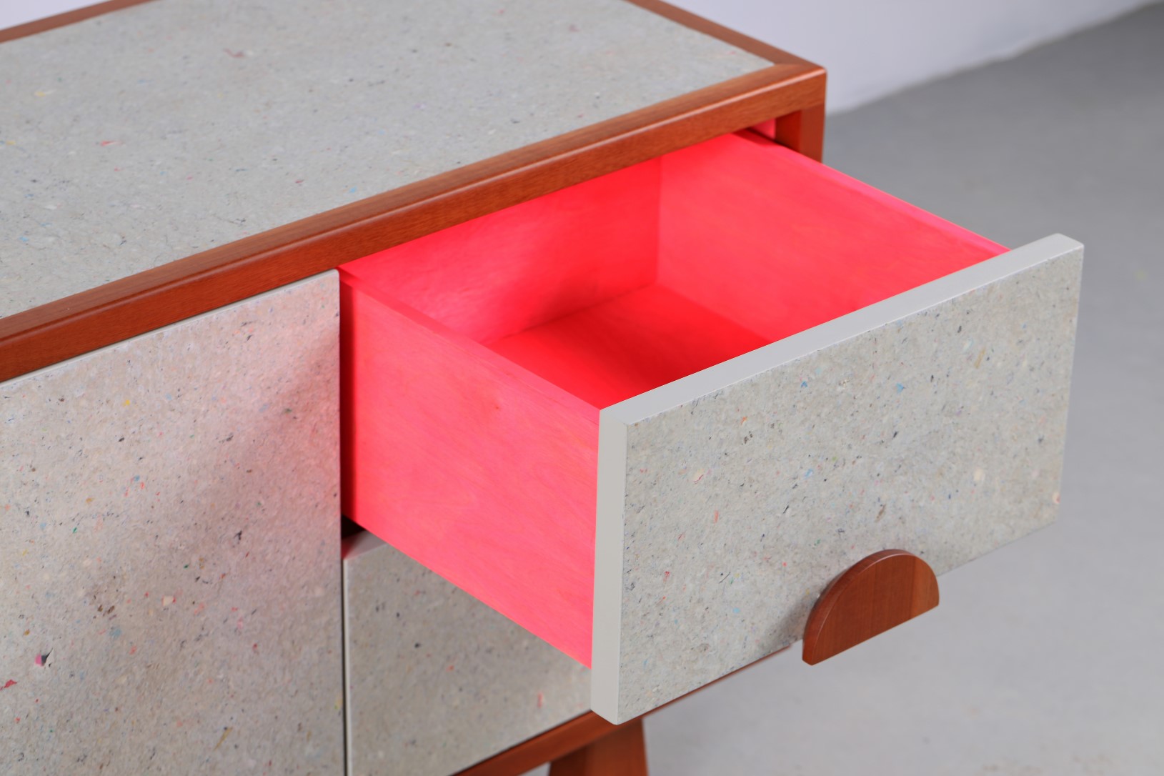 Коллекция im-ocean «Розовый единорог» посвящена игре и сочетаниям. Переработанная бумага и красное дерево; формовка.