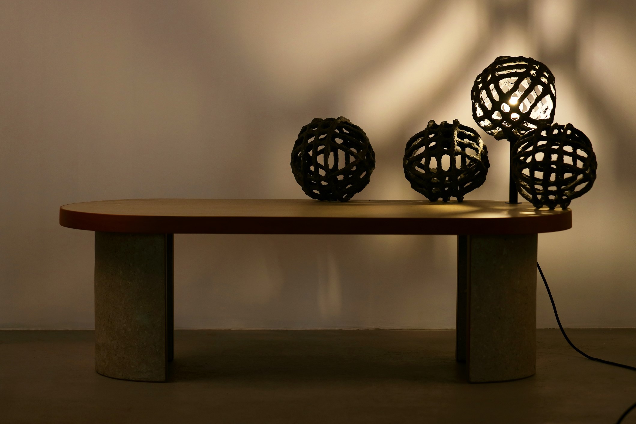 Коллекция im-ocean «Розовый единорог» посвящена игре и сочетаниям. Переработанная бумага и красное дерево; формовка.