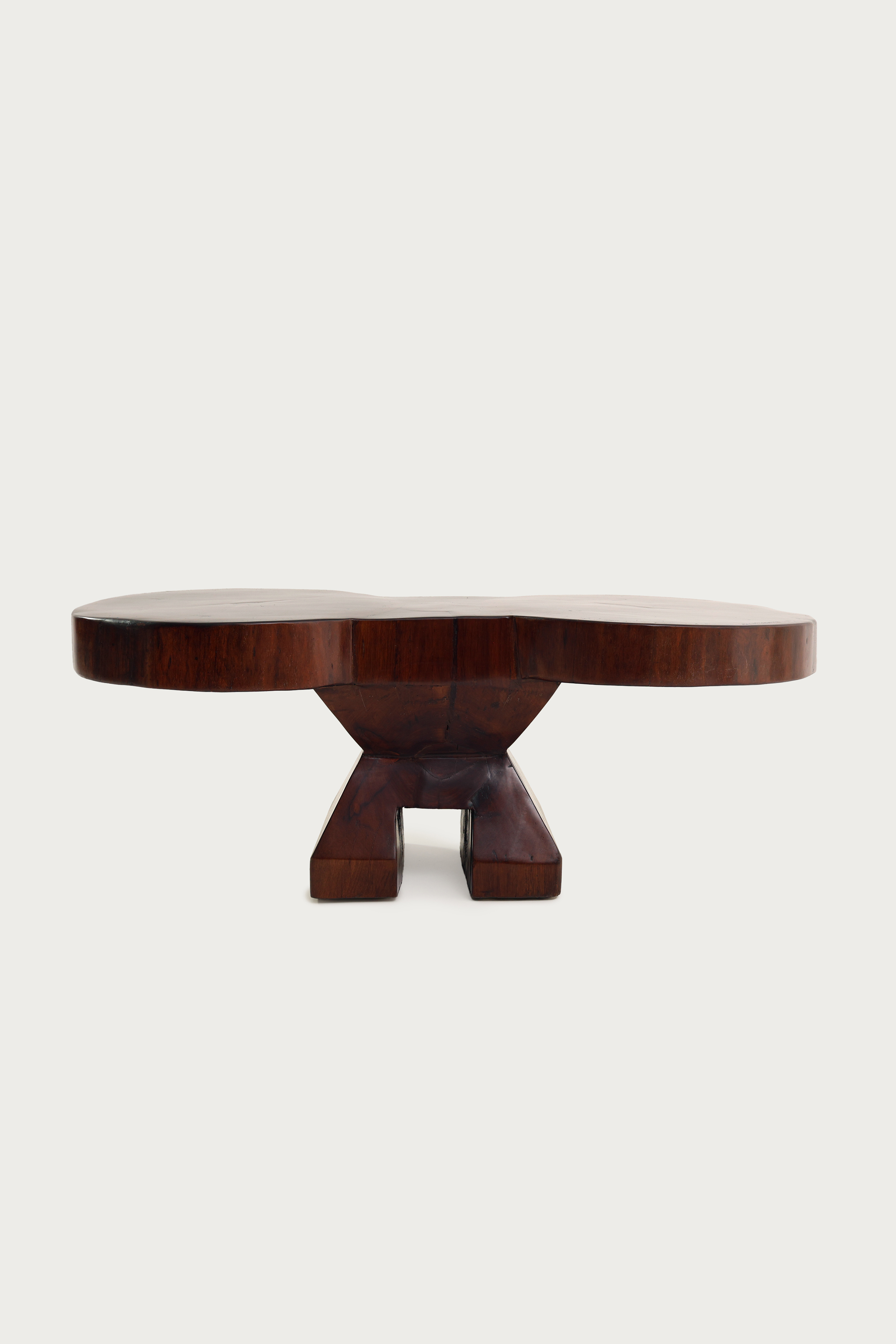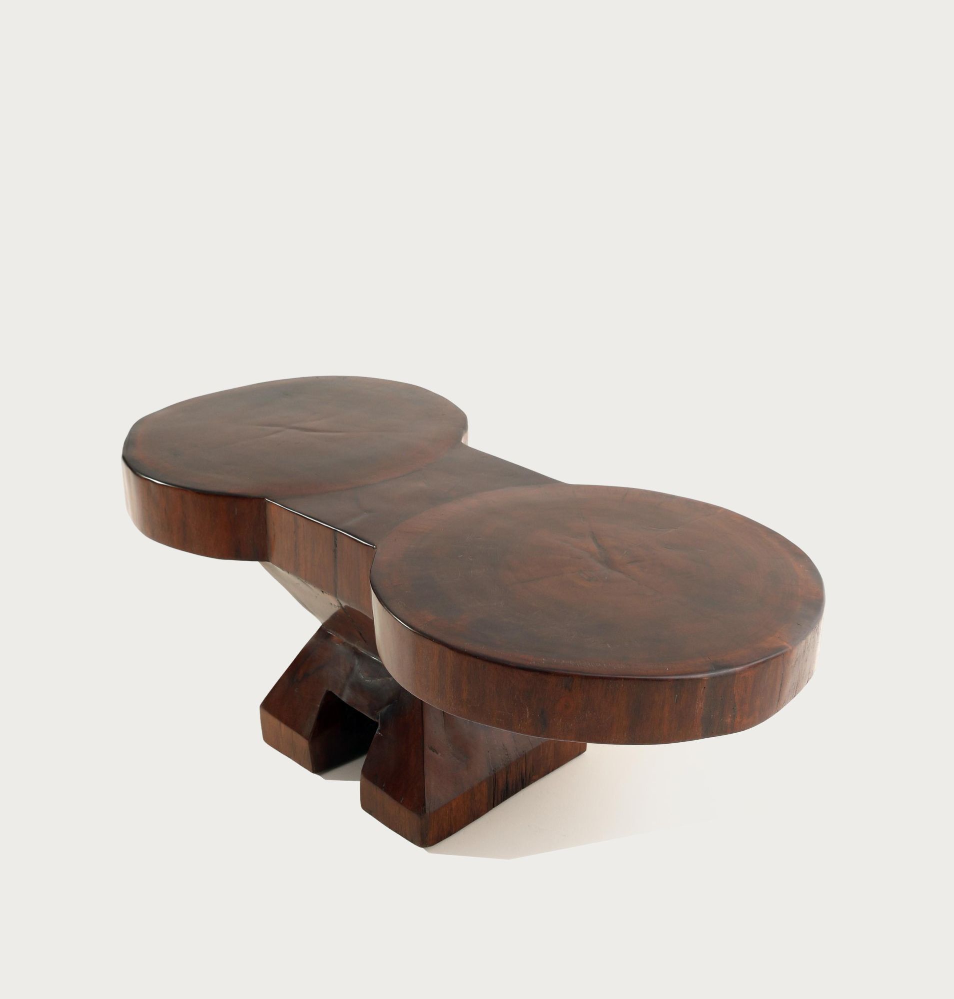 Столик из ценной породы дерева — пример уважительной и бережной работы с материалом: предмет позволяет материалу проявить свою суть в сложном сочетании форм.