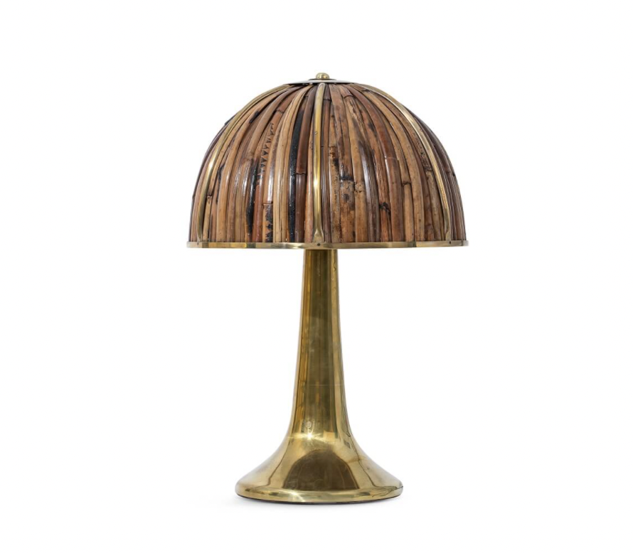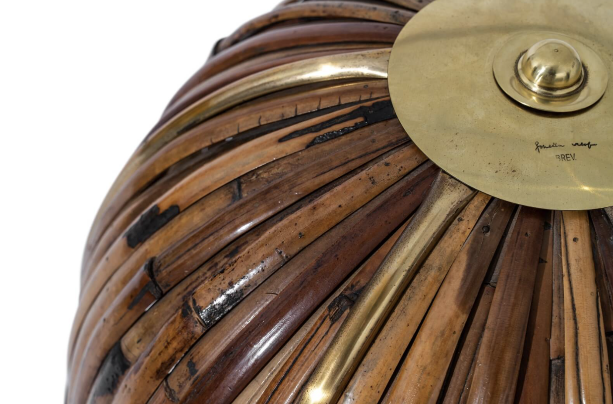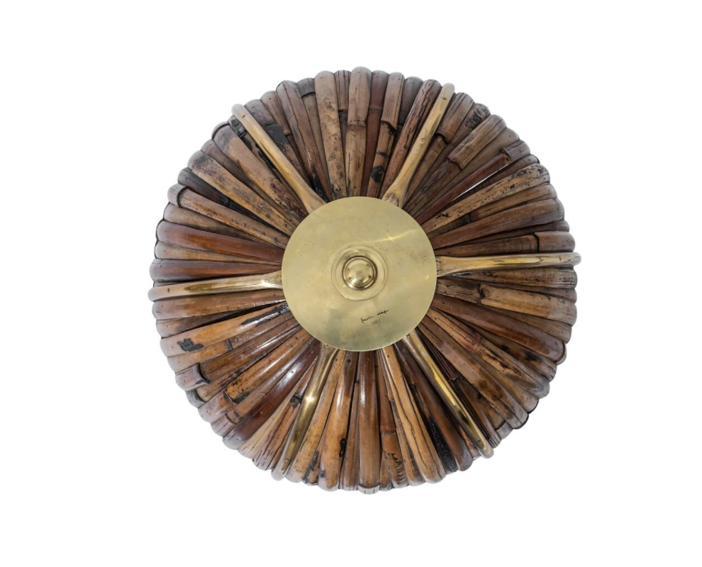 Знаменитая лампа Fungo Габриэллы Креспи — хит коллекции Rising Sun 1973 года. Лейтмотив коллекции — узор в виде солнечных лучей — пример гениального мастерства в работе с бамбуковыми стеблями.