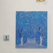 «Мы думали о выставке летом. Поговорили и отправились на прогулку. Максим устроился с мадам Лебовски на берегу Финского залива, рисуя меланхоличные пейзажи, а я плавала, наслаждаясь прохладной водой, которая казалась теплее обычного. Это было прекрасно…