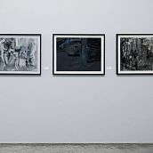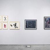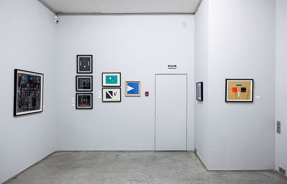 На выставке представлены работы художников ленинградского неофициального искусства Леонида Борисова и Евгения Михнова-Войтенко.