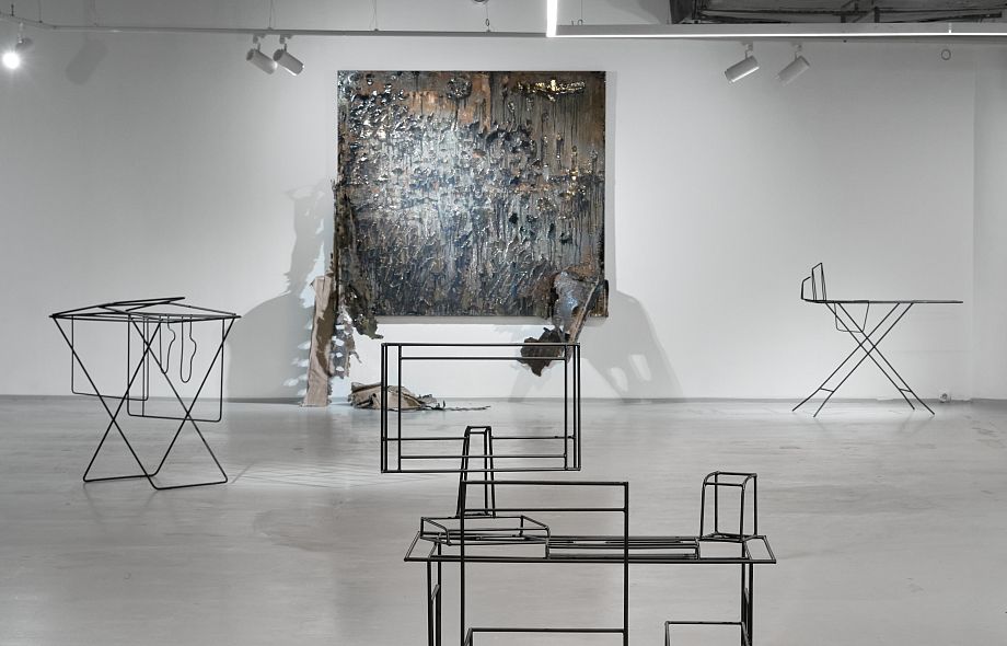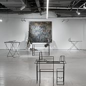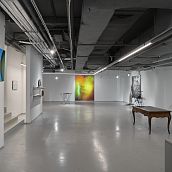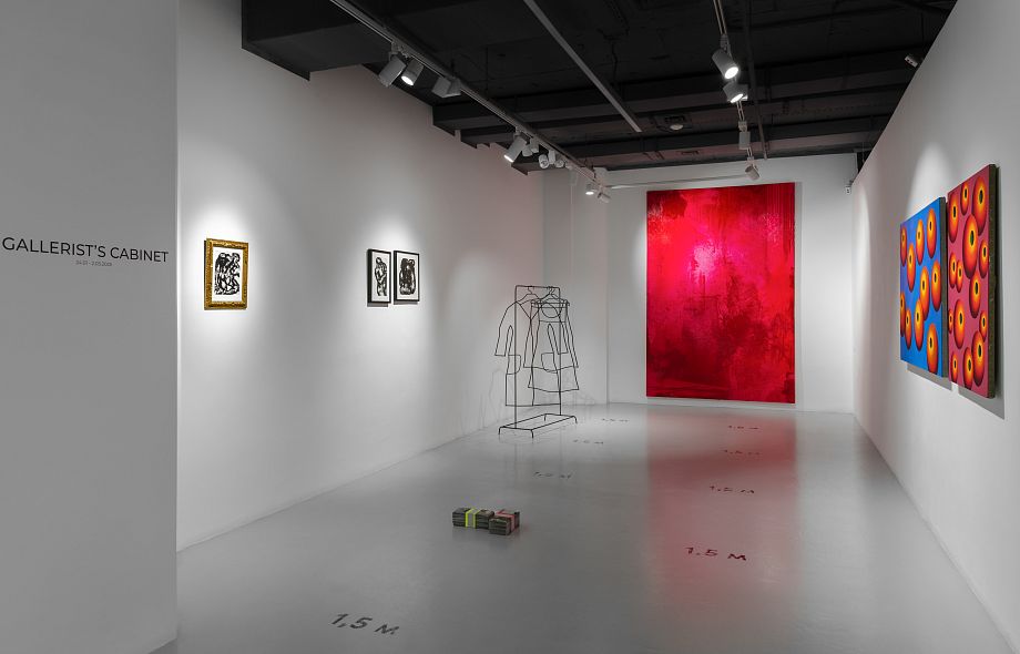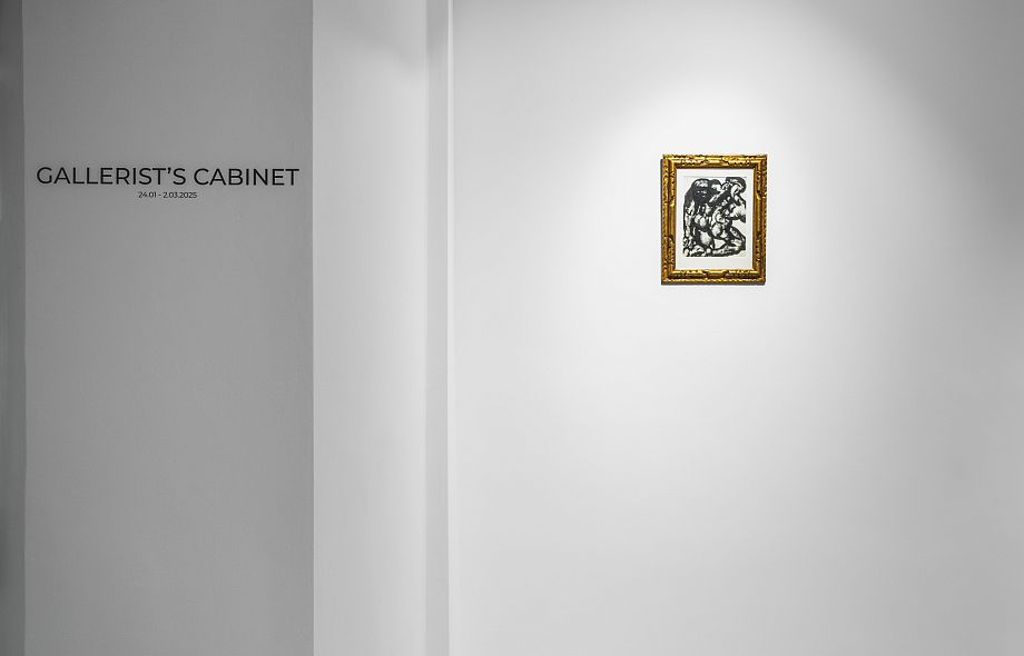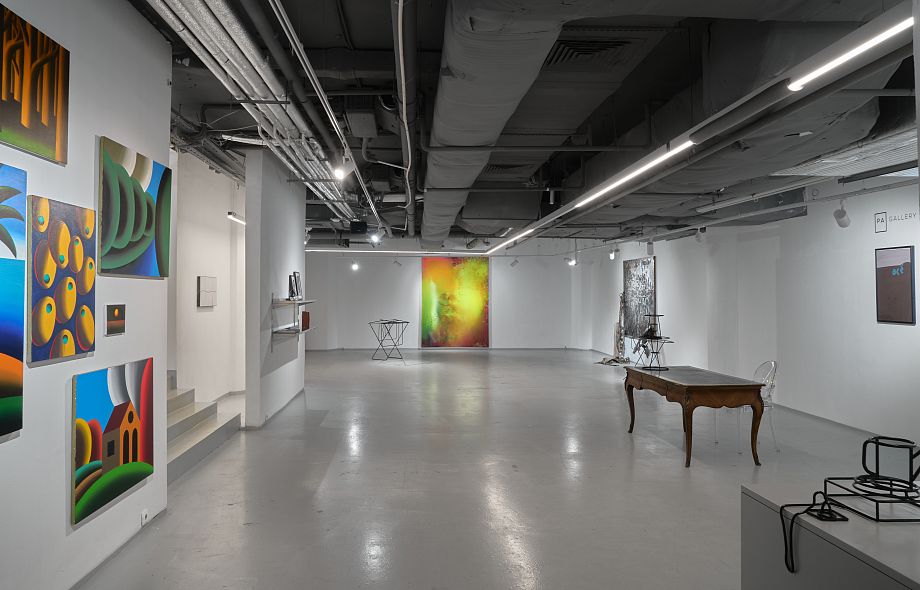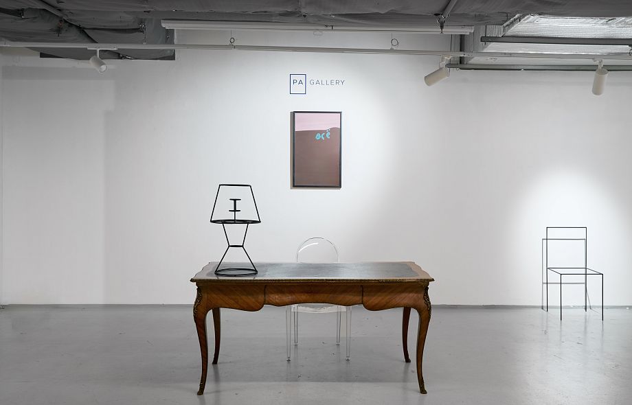 «Кабинет галериста» представляет не только работы всех авторов, с которыми работает PA Gallery, но и частные собрания ее владельцев. Будучи собранными вместе, они начинают отражаться друг в друге. Каркасные металлические конструкции Ани Жёлудь, сводящие повседневные предметы – гладильную доску, пианино, торшер – к контурам их границ, замыкающих пустоту, вступают в диалог с танцующими изогнутыми траекториями Евгения Михнова-Войтенко, образованными выдавленной из тюбиков краской. Энергичная графика Евгения Чубарова, в которой «пузырящиеся» телесные объемы превращаются в беспредметные монохромы, занимая целую стену в духе типичной для кабинета редкостей шпалерной развески, отражается в монументальной живописи Алисы Гореловой, сопоставляющей физиологию и мимесис в ощущении жизни как материального потока. Зеркальные полотна Антона Конюхова, хранящие на себе травмирующие жесты-удары, рифмуются с поверхностями Владимира Трямкина, выстроенными как шероховатая дырявая терка – оптическая ловушка для «застревающего» в ней зрительского взгляда. Тотально гладкий, лишенный шероховатостей и нестыковок предметного мира пейзаж Олега Хвостова встречает своих антиподов – поверхности Андрея Волкова, чья одухотворенная красочность подобна океанической стихии, или, с другой стороны, экспрессивные мазки Владислава Зубарева. Наконец, кирпичи, плитки и книги Андрея Сяйлева, имитирующие сбои в восприятии, или сюрреалистичные фарфоровые объекты Анны Казьминой сами по себе выглядят как «диковинки» в лучших традициях кабинета чудес.