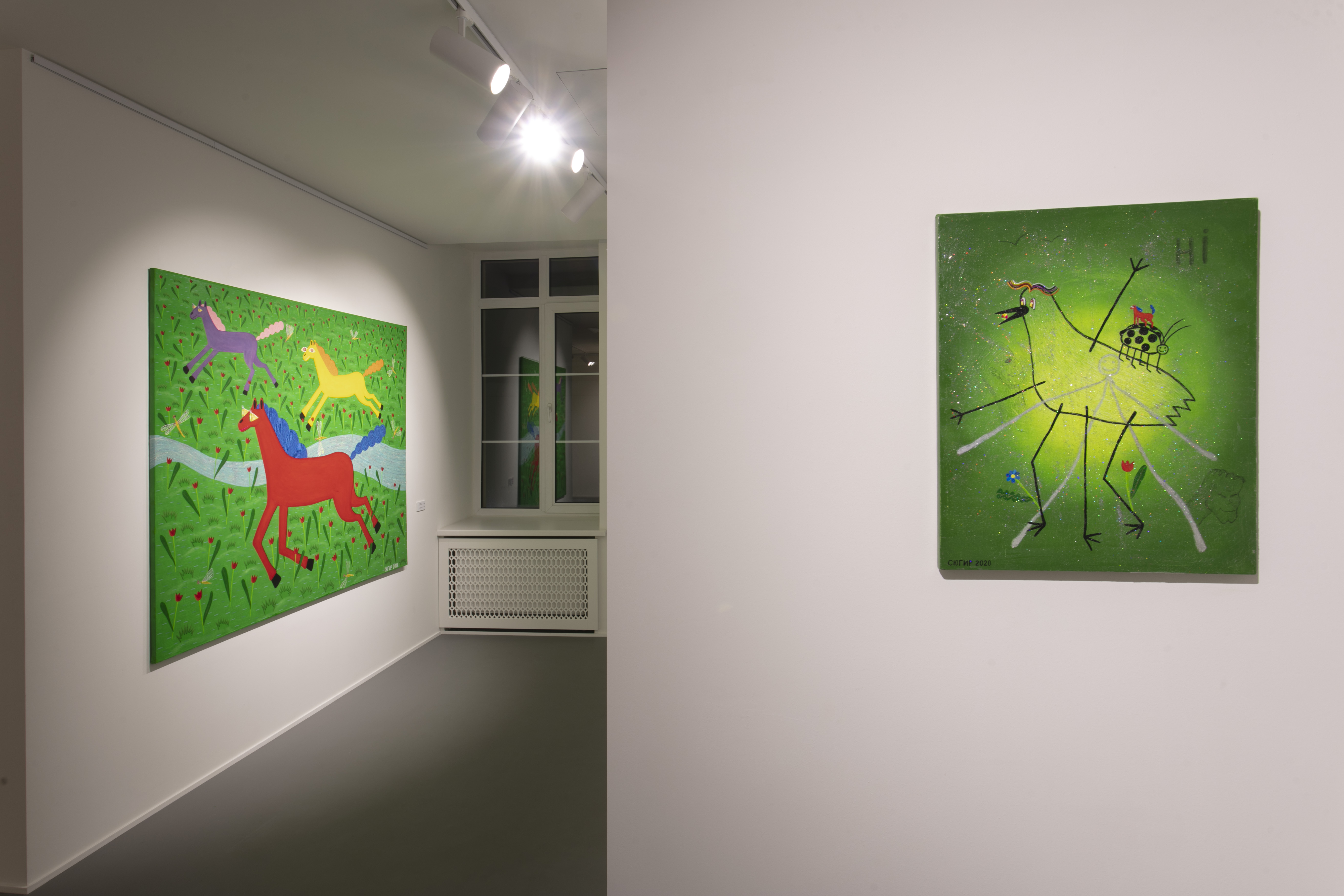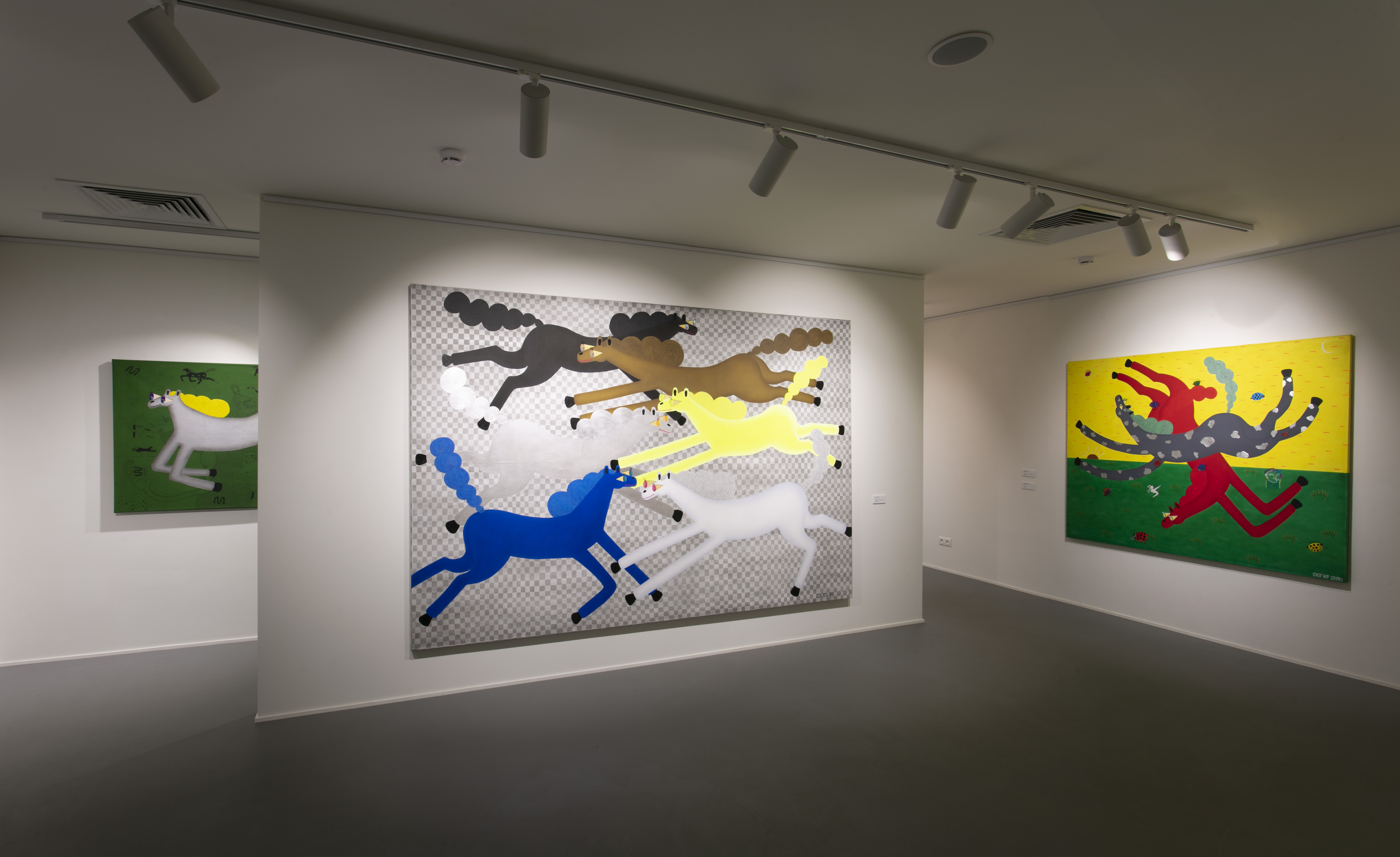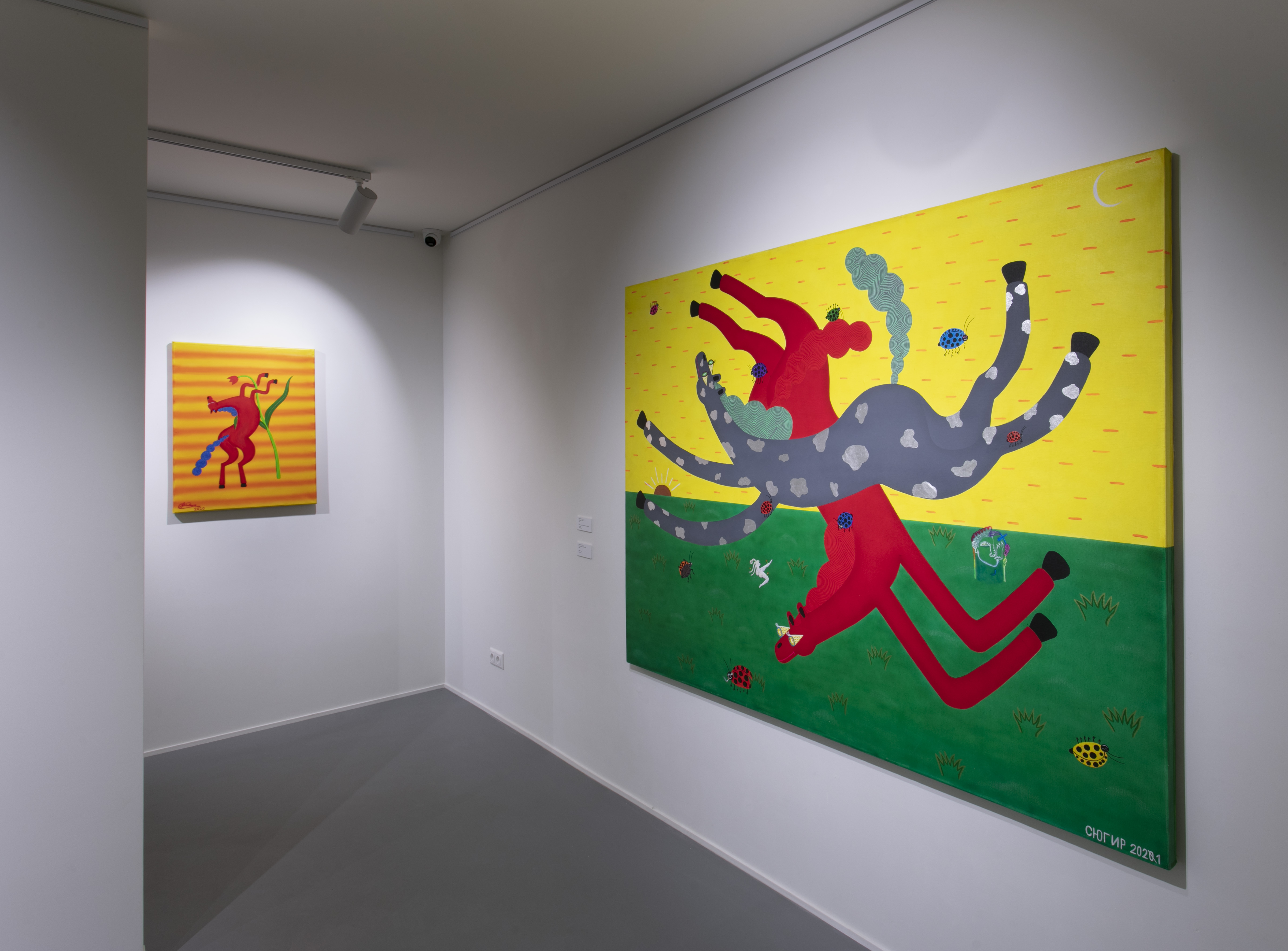 Кони и тюльпаны – основные образы в творчестве Сюгира Булуктаева, они связаны с Калмыкией, родиной художника. Эти образы проступили сами собой в 2018 году, когда художник долгое время жил в Европе, они оказались родными и приятными, Сюгиру просто хотелось их рисовать. В традиционной культуре калмыков конь занимает главное место, это сложилось из кочевого образа жизни в бескрайних степях. В эпосе монголоязычных и тюркоязычных народов существует особый жанр «магтал коню» («хвала коню») – это воспевание его красоты и достоинств . Кони при этом обладают невероятной мощью и чудесными свойствами, как способностью летать и говорить. Главным примером здесь может быть калмыцкий героический эпос «Джангар» XV века, который называют «эпосом прославленных всадников».