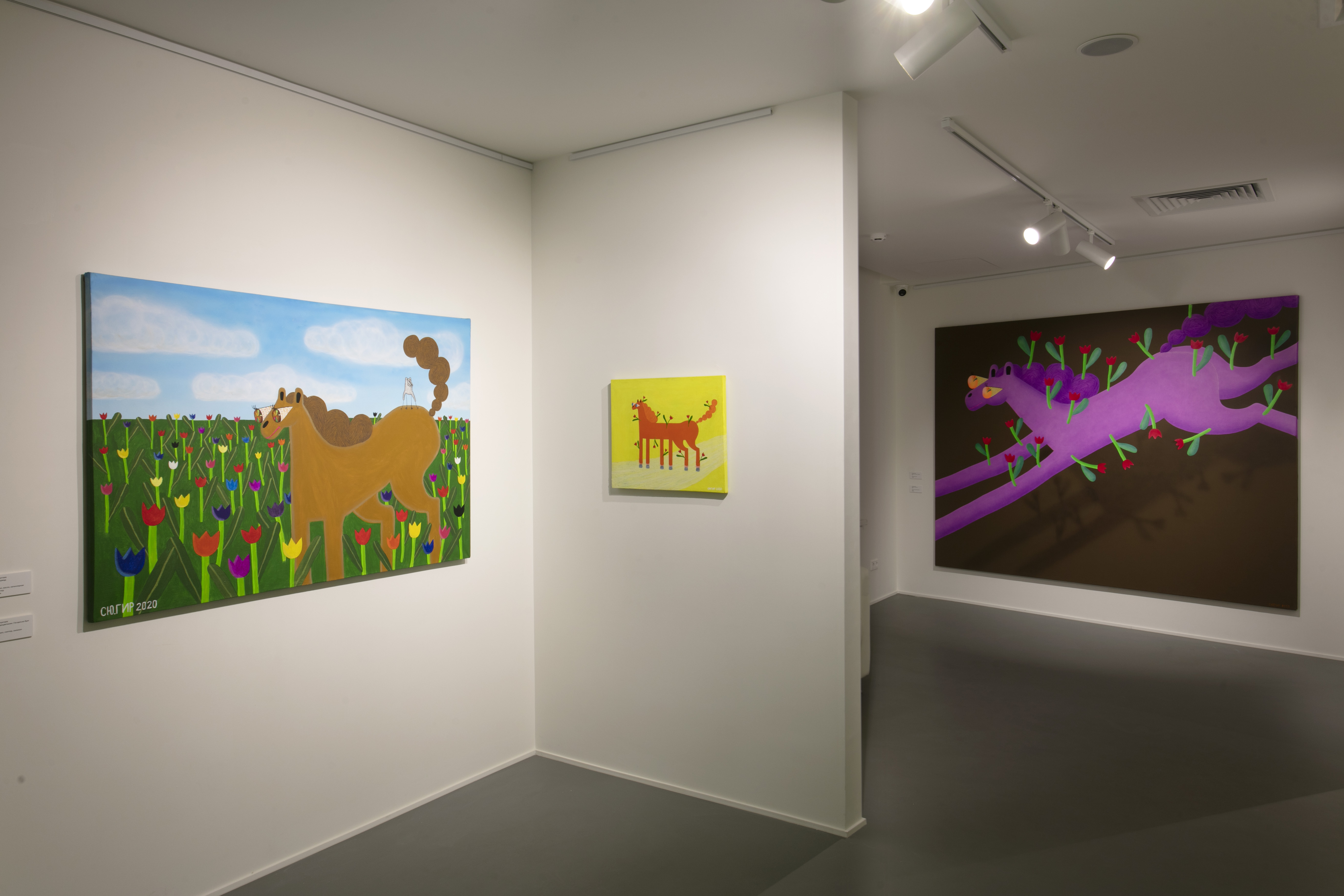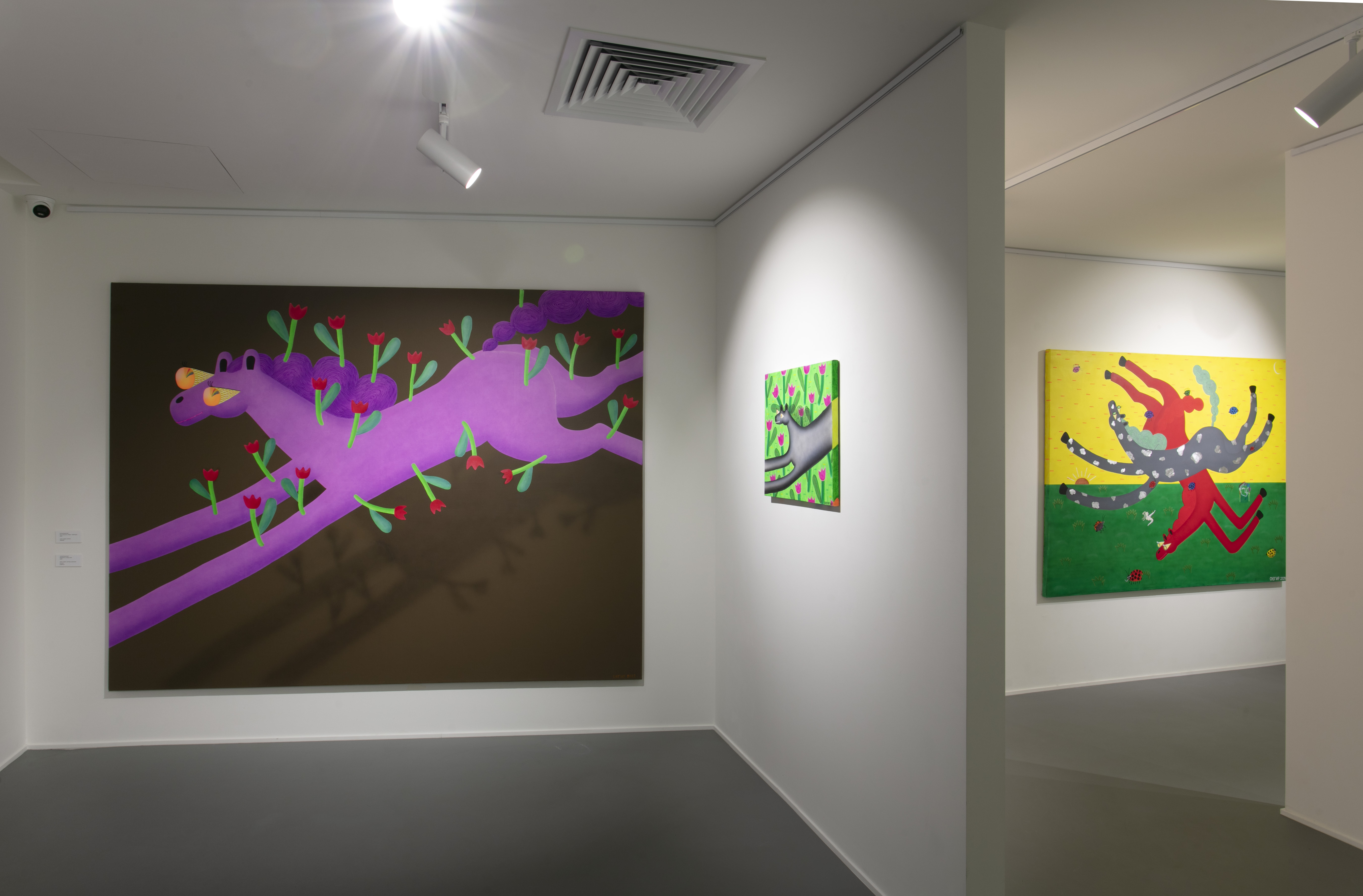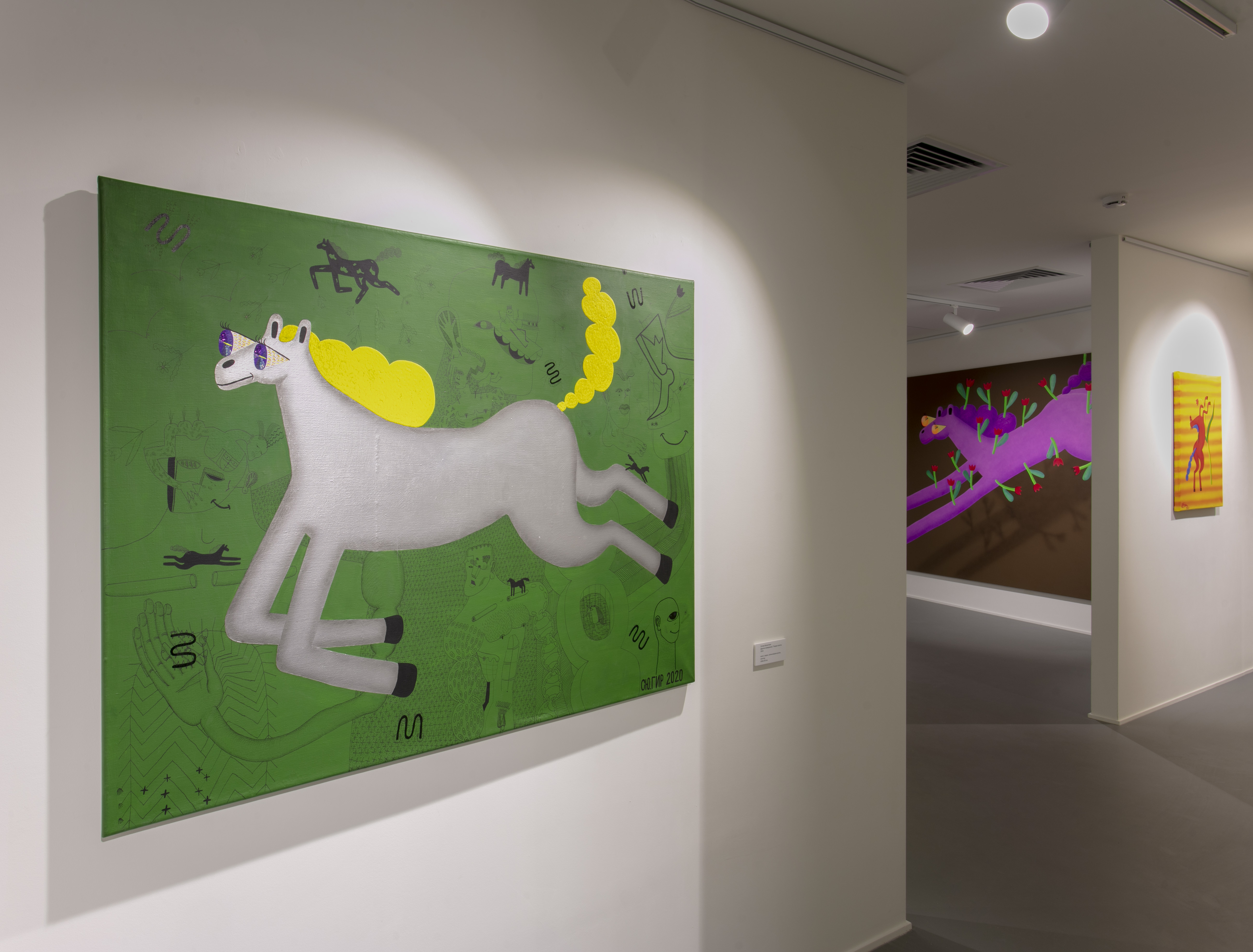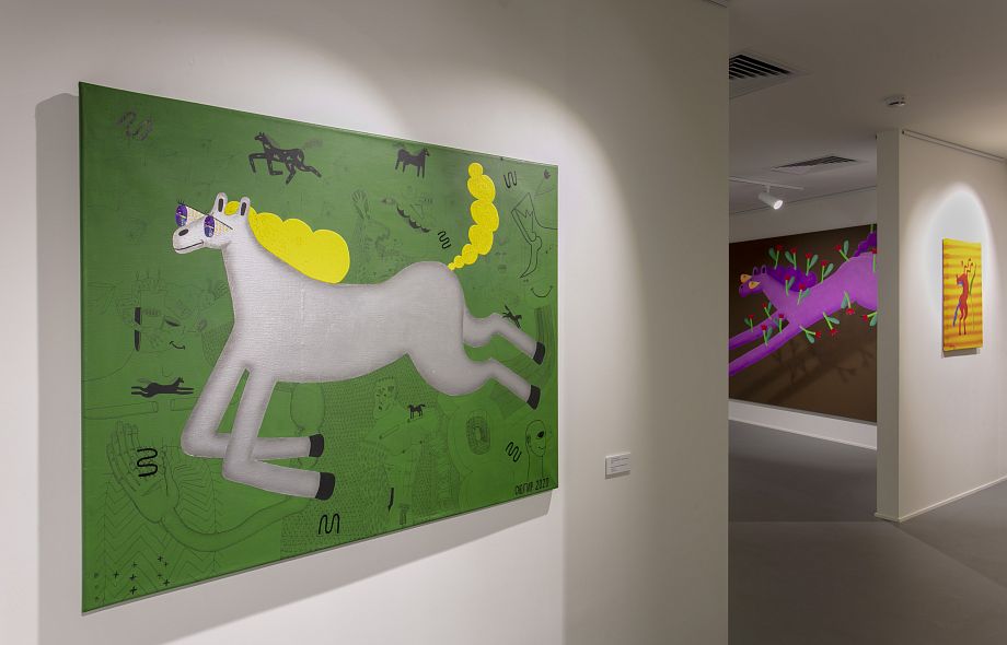 Кони и тюльпаны – основные образы в творчестве Сюгира Булуктаева, они связаны с Калмыкией, родиной художника. Эти образы проступили сами собой в 2018 году, когда художник долгое время жил в Европе, они оказались родными и приятными, Сюгиру просто хотелось их рисовать. В традиционной культуре калмыков конь занимает главное место, это сложилось из кочевого образа жизни в бескрайних степях. В эпосе монголоязычных и тюркоязычных народов существует особый жанр «магтал коню» («хвала коню») – это воспевание его красоты и достоинств . Кони при этом обладают невероятной мощью и чудесными свойствами, как способностью летать и говорить. Главным примером здесь может быть калмыцкий героический эпос «Джангар» XV века, который называют «эпосом прославленных всадников».