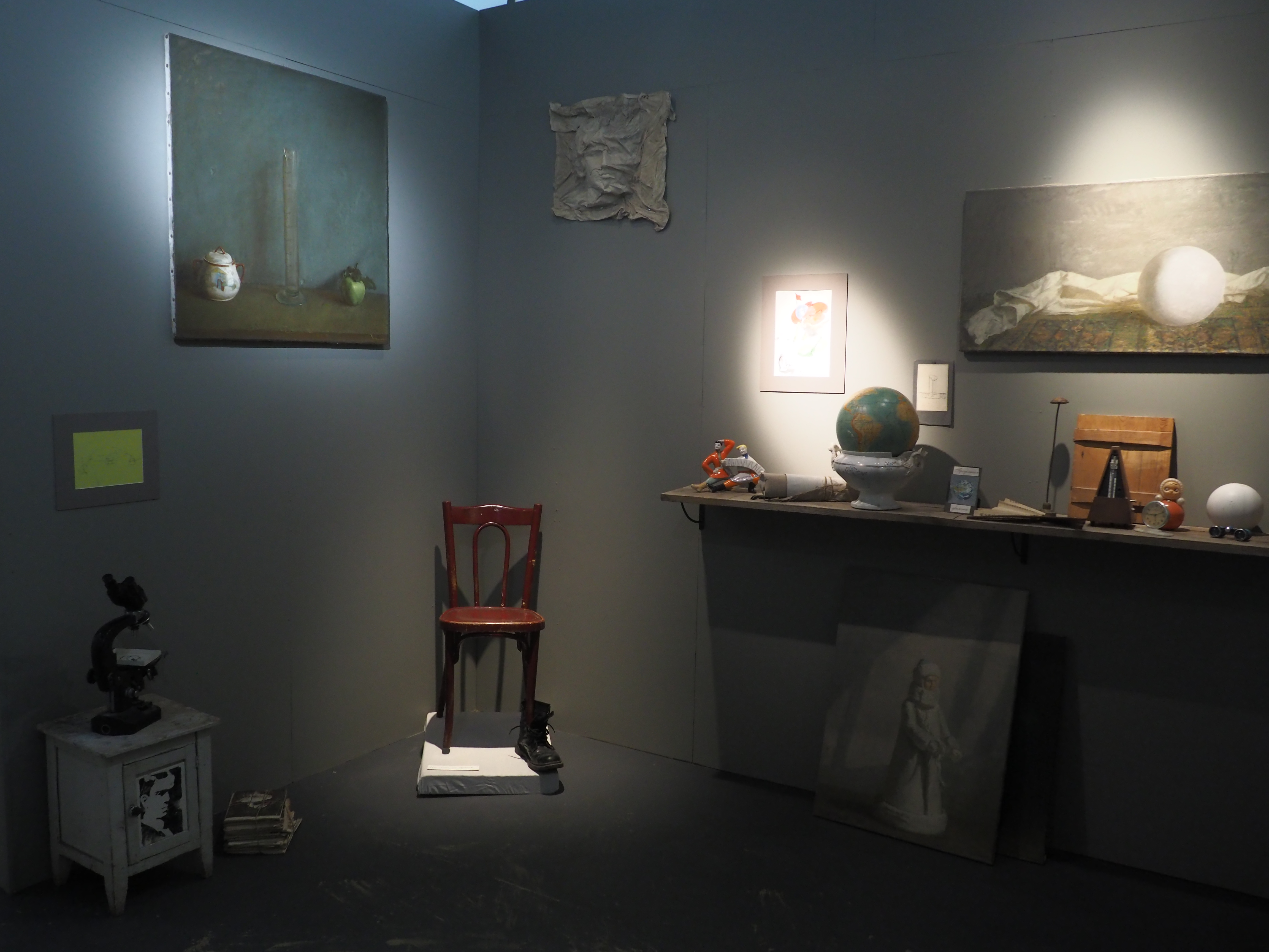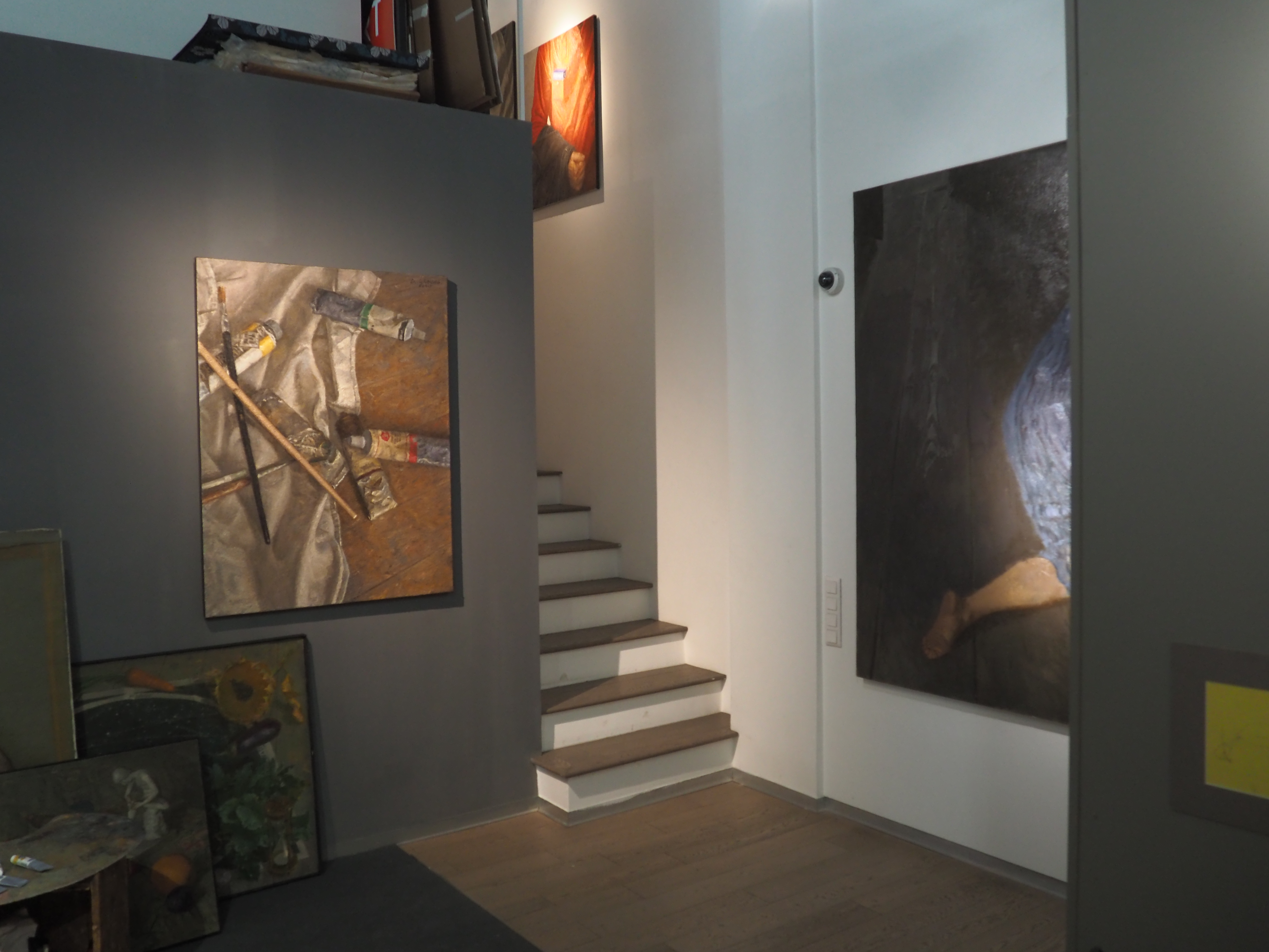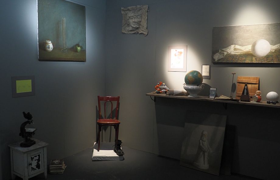 Живописные холсты отвернуты к стенам, перевернуты «вверх ногами», в случайном порядке накладываются один на другой, создавая тем самым новые сюжеты. Отдельные произведения, разумеется, видны целиком — на стенах «мастерской» и на рабочем мольберте. В экспозиции также расположены забытые вещи и подаренные произведения Павла Пепперштейна, Сергея Ануфриева, Аркадия Насонова, Сергея Балашова, Евгения Кемеровского, Евгения Нестерова, Николая Колупаева и других.