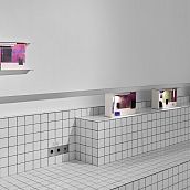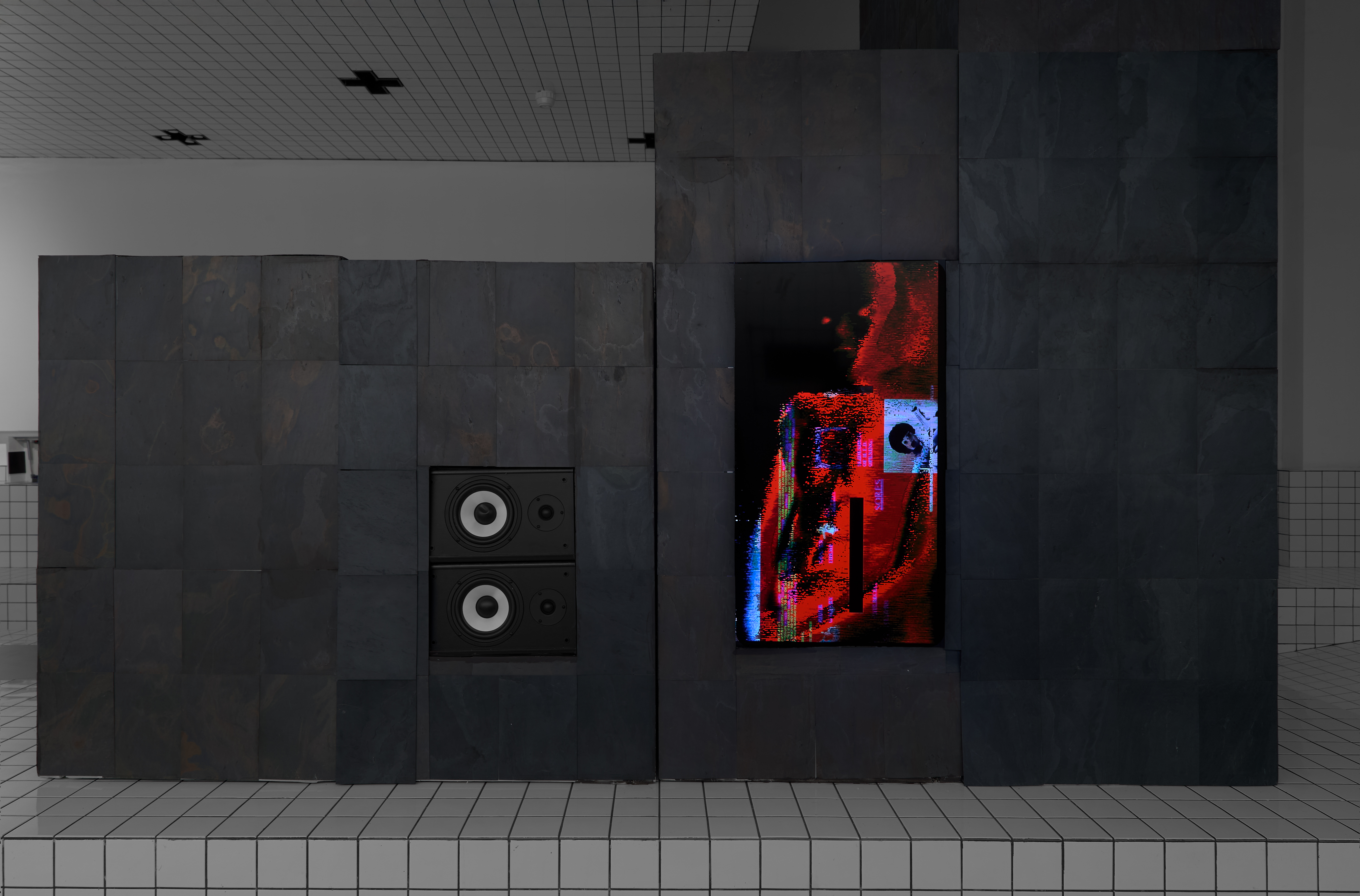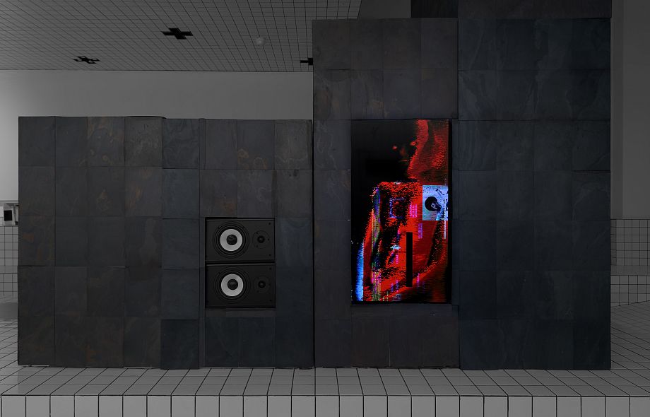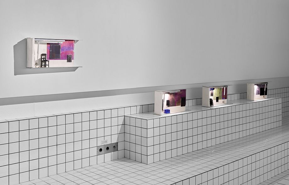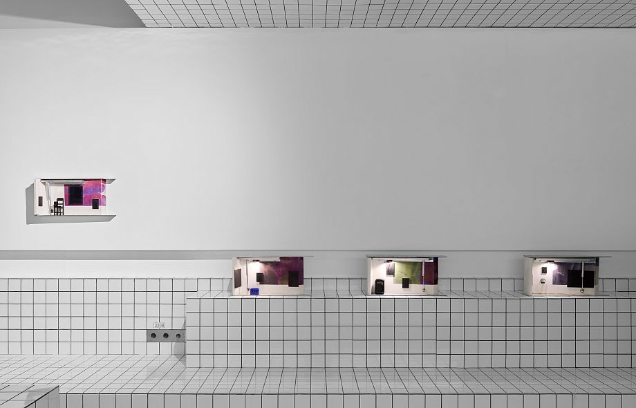 В экспозиции представлена масштабная мультимедийная инсталляция, интегрированная в архитектуру галереи, а также серия среднеформатных объектов, имитирующих институциональные выставочные пространства.