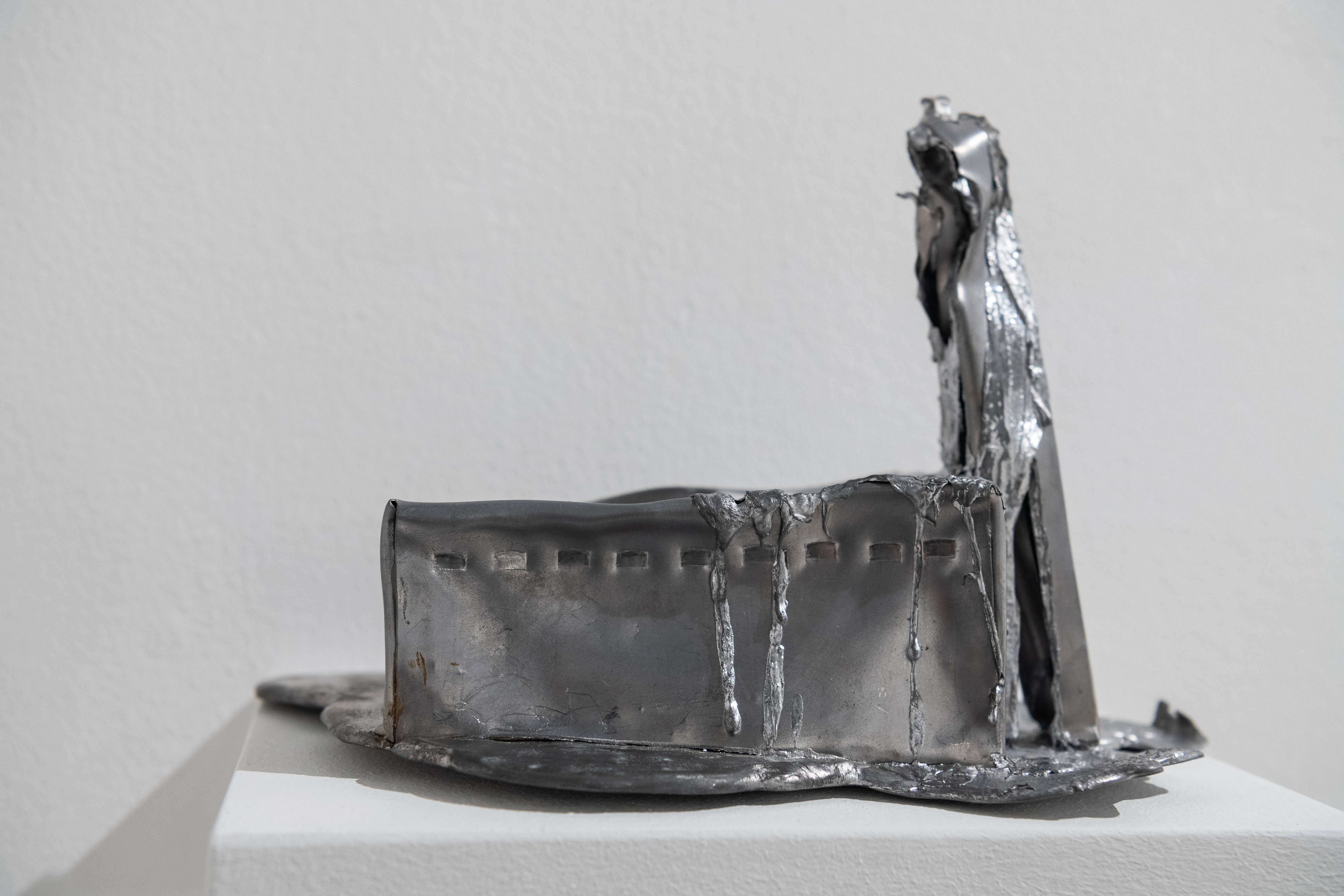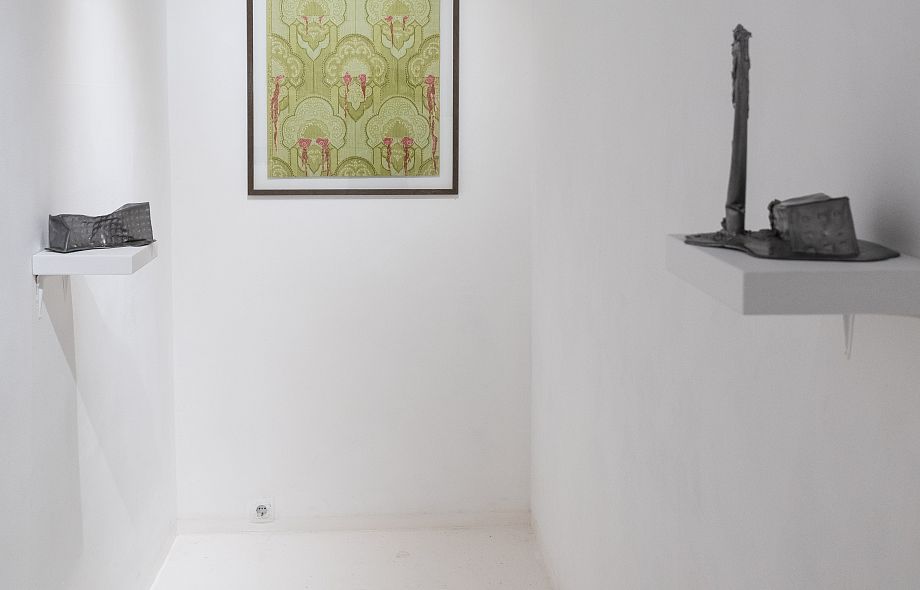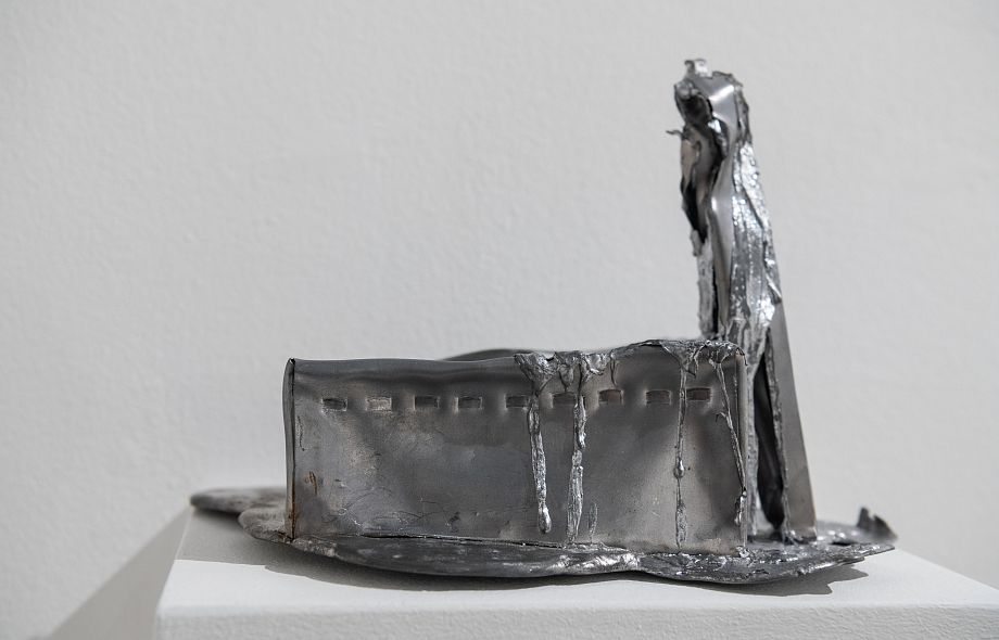 Новые объекты Булныгина — как археологические находки, затаившиеся в своем ледяном молчании. Это застывший мир сюрреалистических предметов, которые избегают быть пойманными и поддаются лишь простому перечислению. Вот редкие приметы оттепели - плавящиеся свинцовые строения, образы отжившей утилитарной архитектуры. Там - керамический попугайчик, накрытый тряпкой цвета хаки, замер в неясном ожидании. Здесь - двуглавый поросенок балансирует на антикварной подставке, бросая вызов всем законам физики и логики.