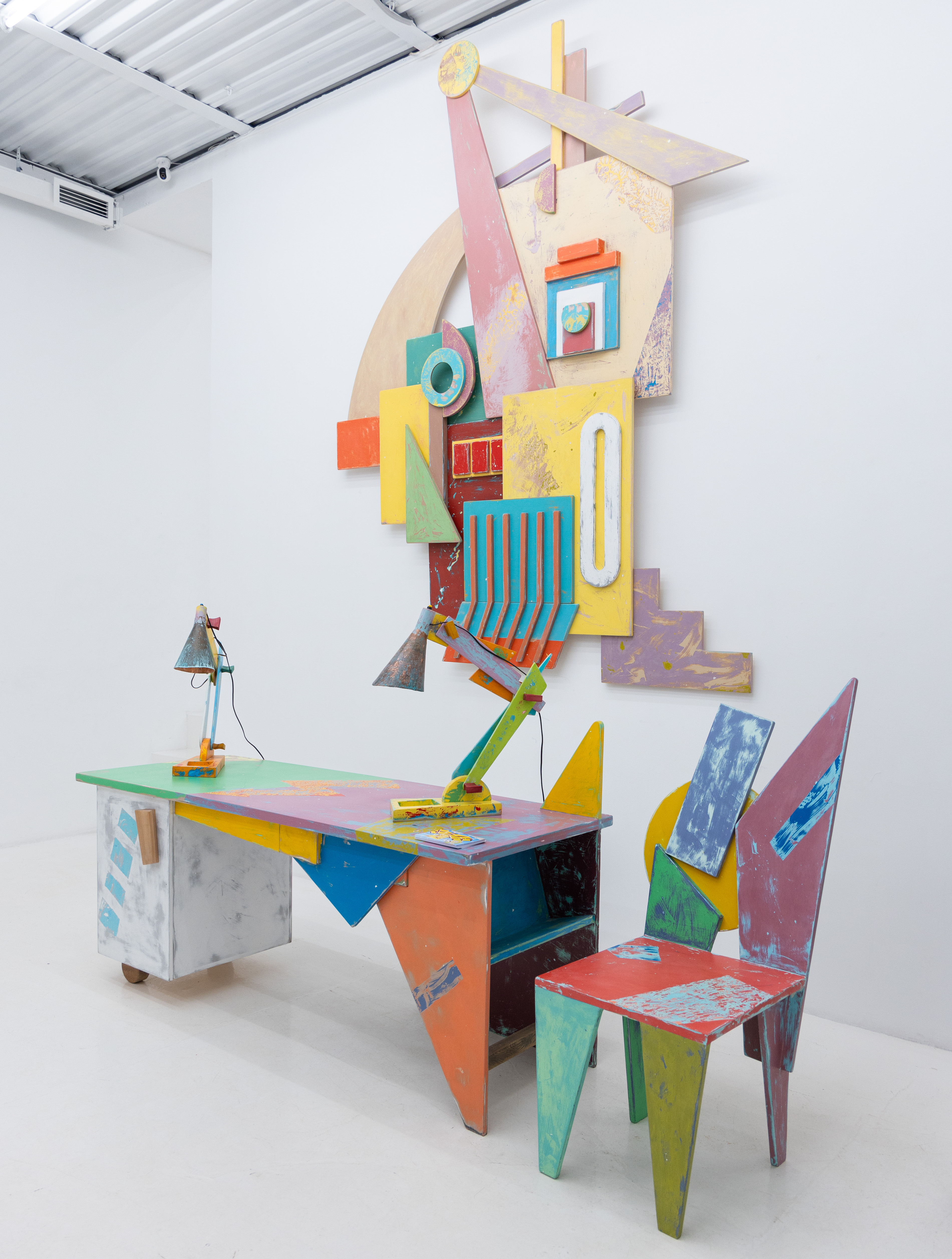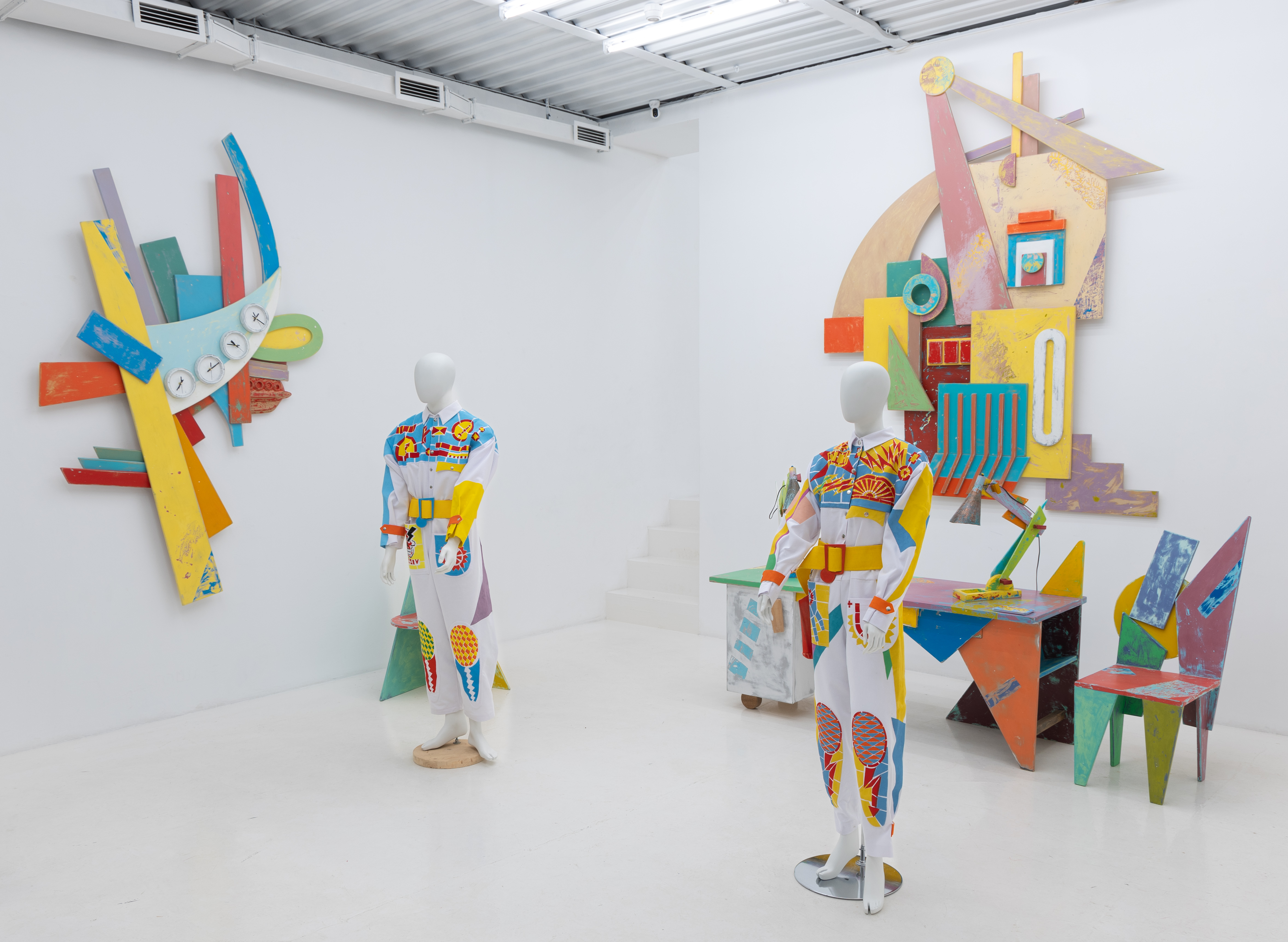Хранилище архива документов и одновременно светильник в виде той же молнии - повторяющийся орнамент на одежде роботов. Одежды представлена целая коллекция в человеческом и миниатюрном, кукольном размере. «От-фютюр» остроумное название этой коллекции. Керамические рельефы с бытовыми сценами из жизни роботов, столы, стулья, настольные лампы, часы, барометры с одинаковым успехом могут быть востребованы и в человеческом быту, и в будущем мире роботов искусственного интеллекта. Эстетика супрематизма в современном контексте и узнаваема и авангардна для современного зрителя. Скульптура «робоскрепы» — механический светильник в виде семьи роботов, которая повторяет человеческую семью, выполнена с применением современных технологий и материалов. Гуманизация роботов, попытки художника внедрить ИИ в творчество, предлагают зрителю погрузиться в реальную жизнь будущего, воображаемого художником. А художники, как показывает опыт человечества, имеют провидческие свойства.