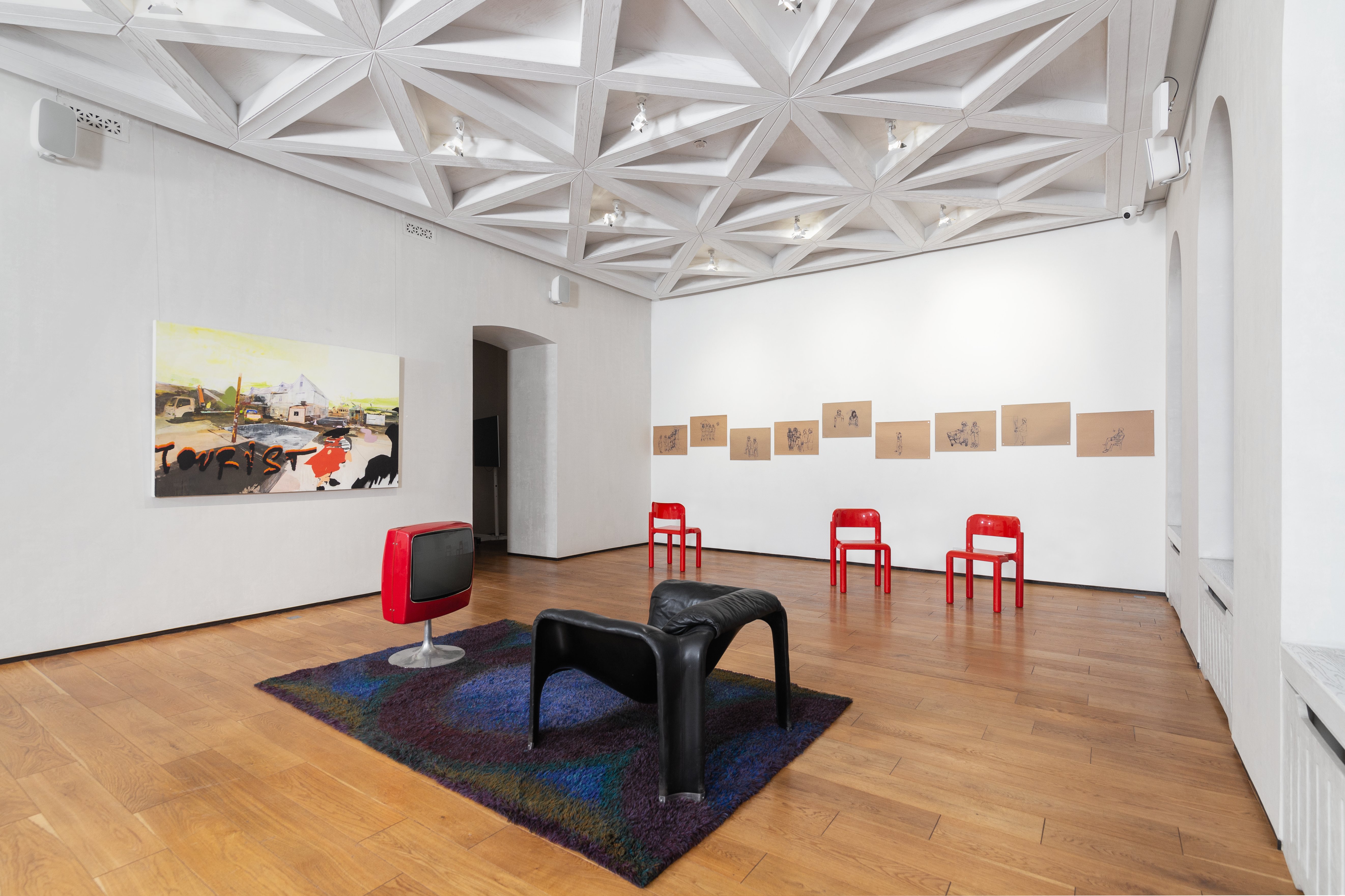 Экспозиция охватывает два этажа и включает в себя несколько серий: живопись на бумаге, на холсте, графику и мурал. Графические работы фиксируют моменты борьбы и сомнений, где каждый штрих оставляет след от взаимодействия художника с материалом, а холсты демонстрируют сложные многослойные композиции, где аэрозольные фигуры людей контрастируют с насыщенными текстурами фонов.