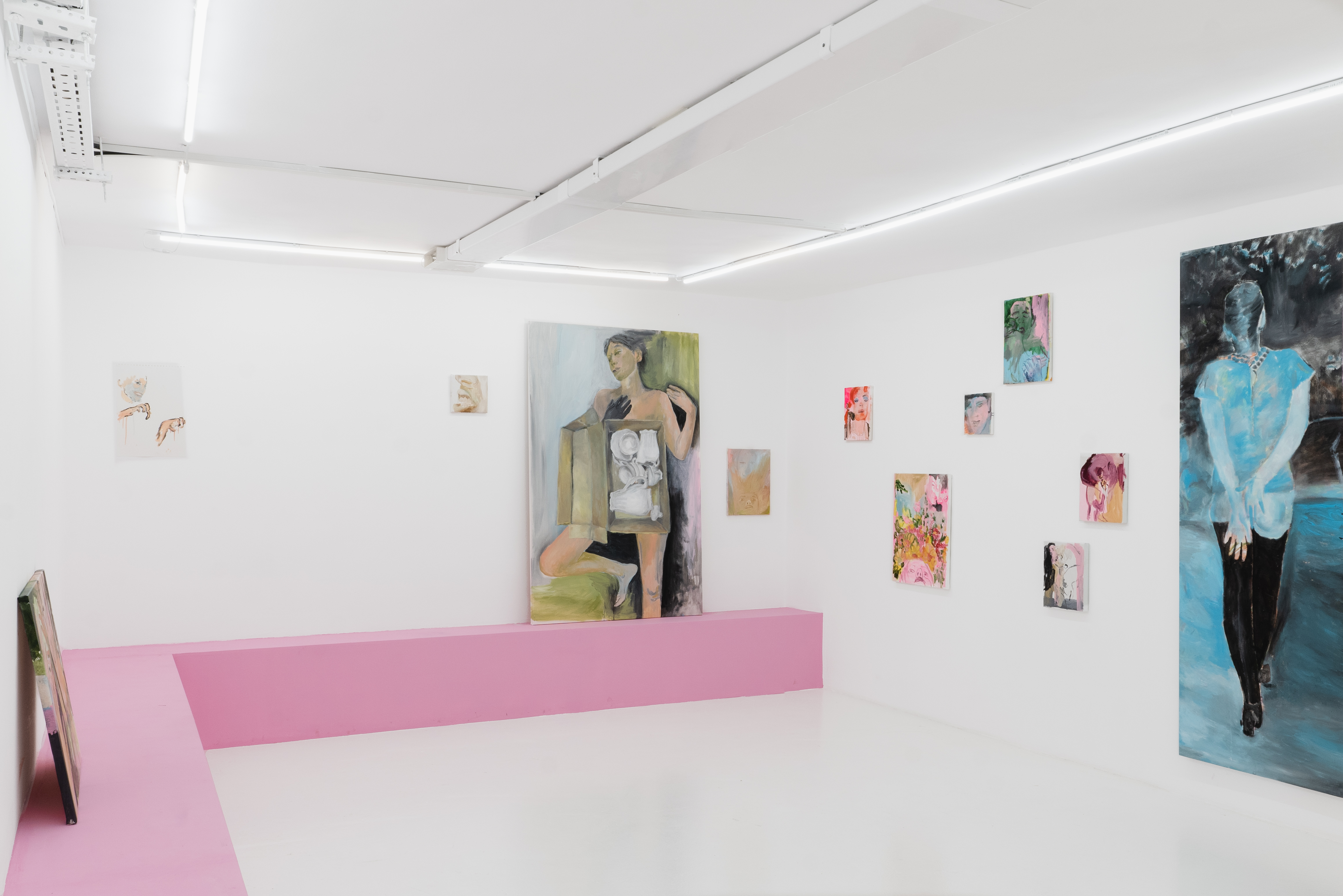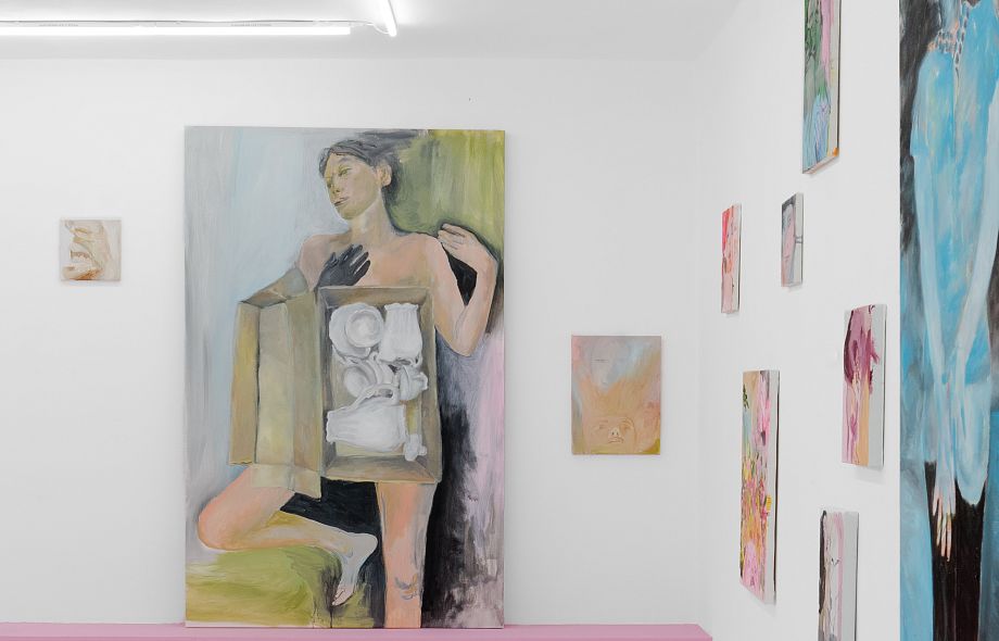 В центре экспозиции большой холст Necessary Rebellion, соединяющий два изображения словно на монтажном столе: образ повернутой спиной к зрителю девушки в неоновых синих оттенках и рука протягивающая яйцо, как символ целостности и начала новой жизни. Разобщенные осколки тел обрамляют исполинскую ладонь с яйцом, словно вылепленную по цвету и форме из тревожных композиций, перетекающих в мясистую абстракцию. Очаровывают своей силой и небольшие работы, мозаично разбросанные в пространстве галереи. Настроение серии вводит в замешательство, сочетая уязвимость с пароксизмом кассетных хорроров 80х.